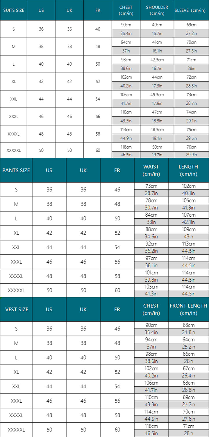Contenu du paquet: 1 * Veste + 1 * Pantalon + 1 * Gilet