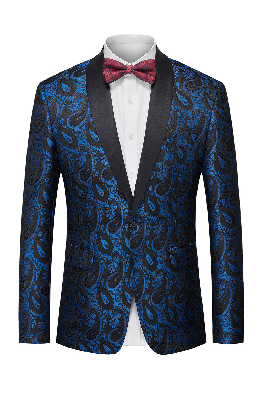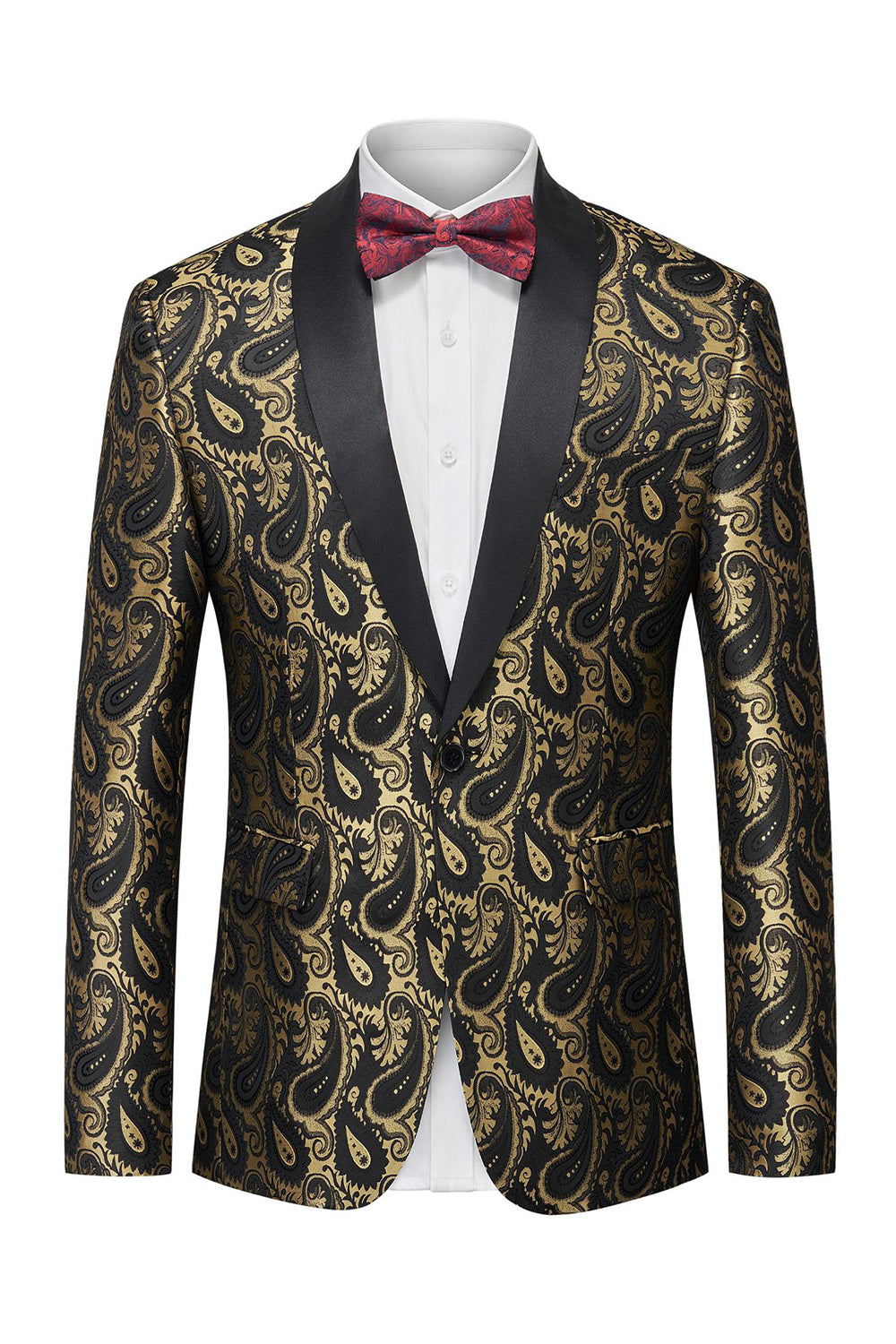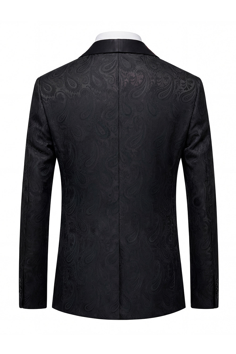Blazer pour hommes à simple boutonnage et chale Jacquard noir à revers avec nœud papillon