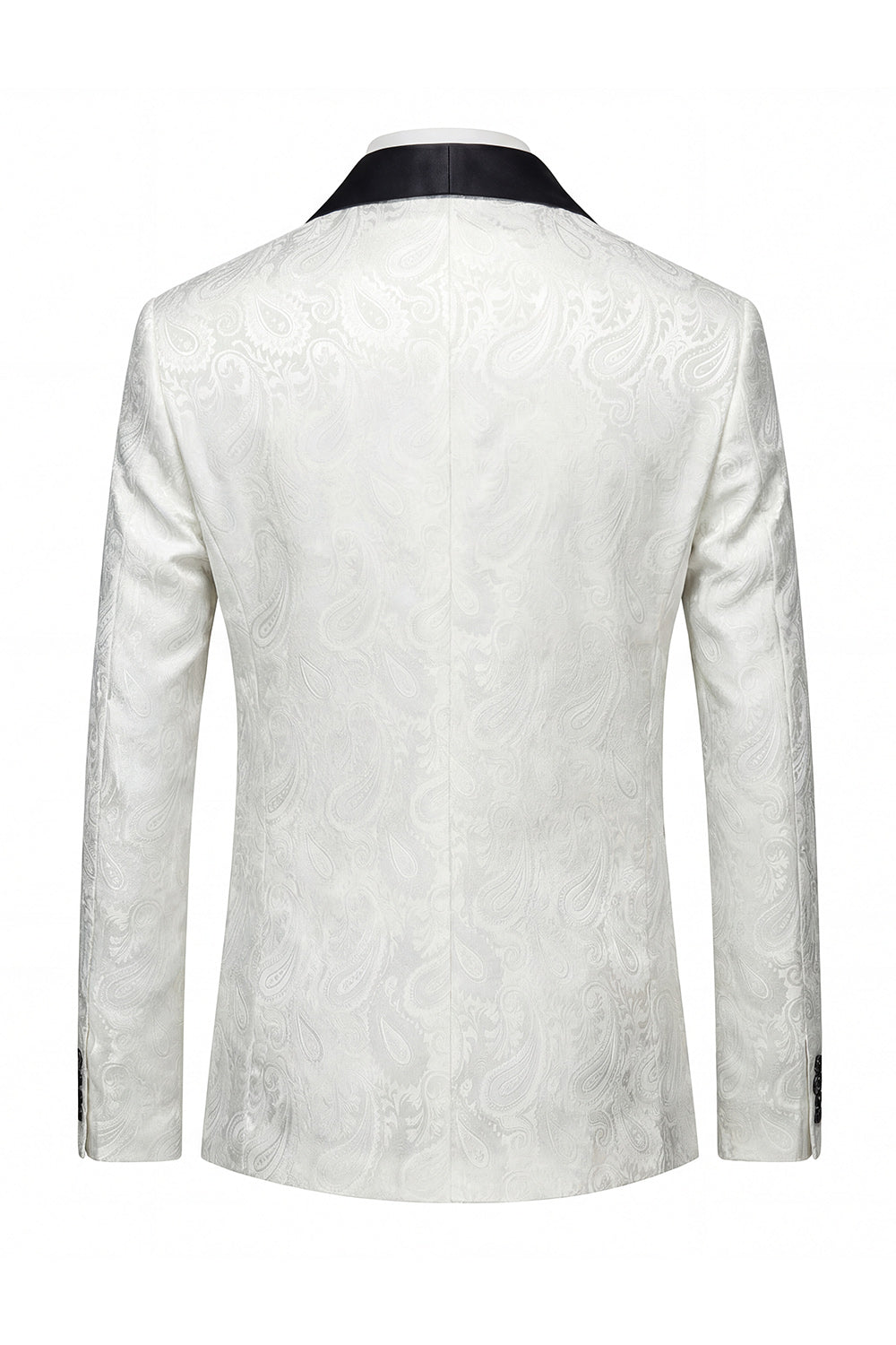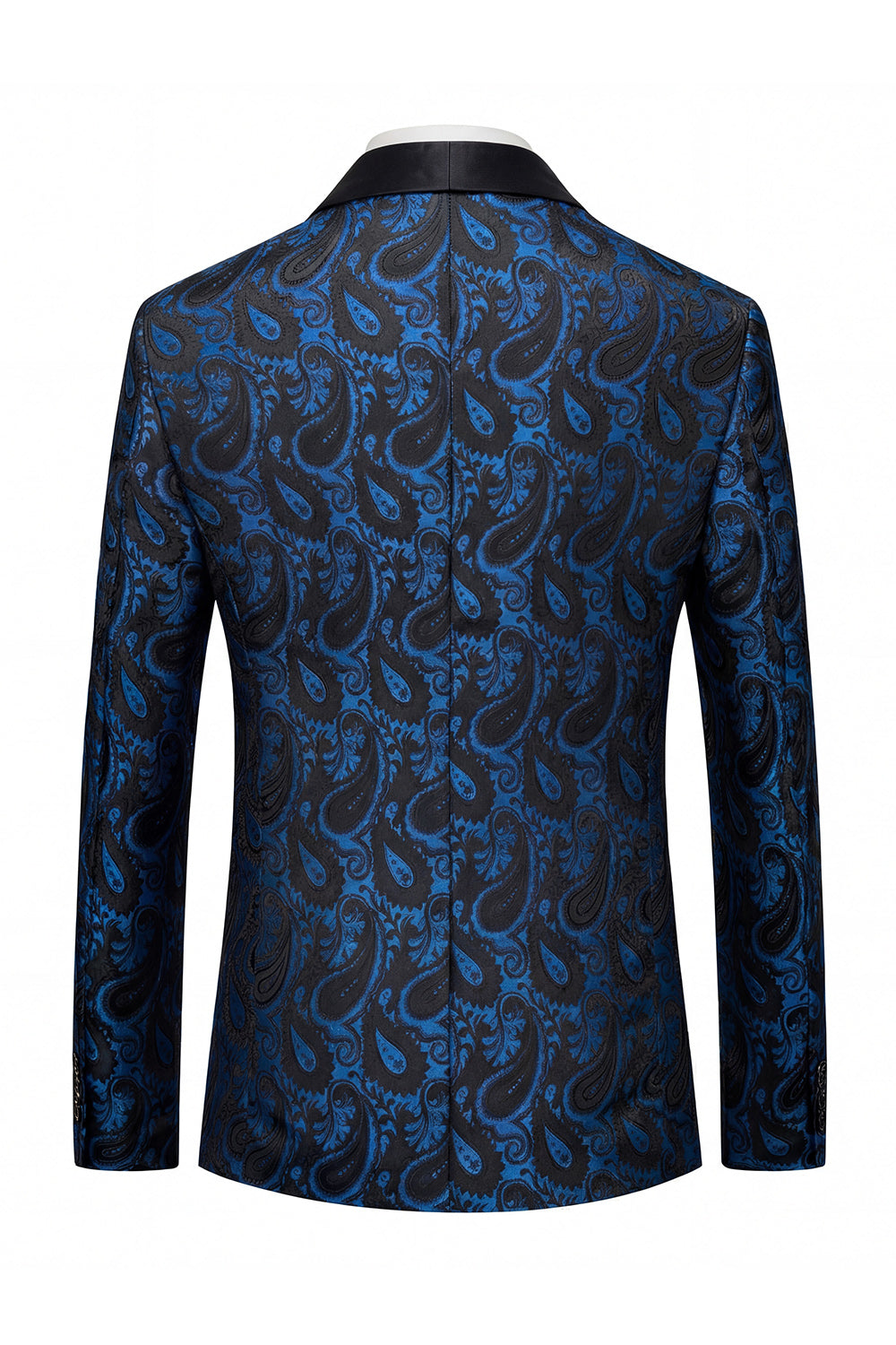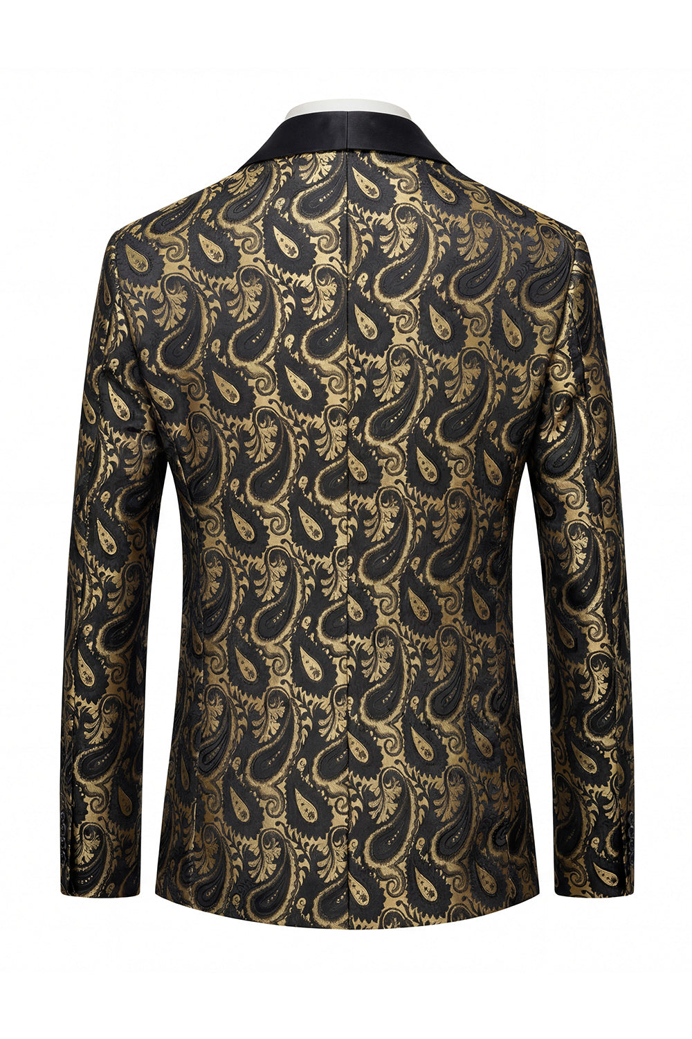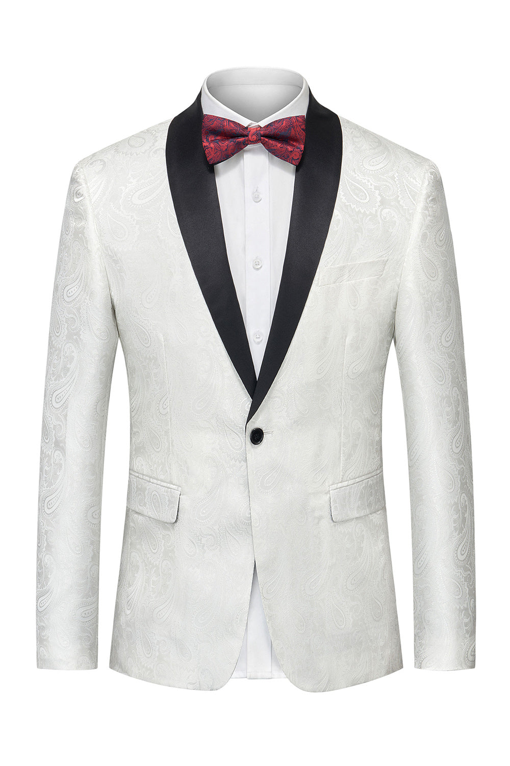 Blazer pour hommes à simple boutonnage et chale Jacquard noir à revers avec nœud papillon