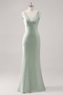 Bleu ciel une ligne V col ouvert dos Satin longue robe de demoiselle d’honneur