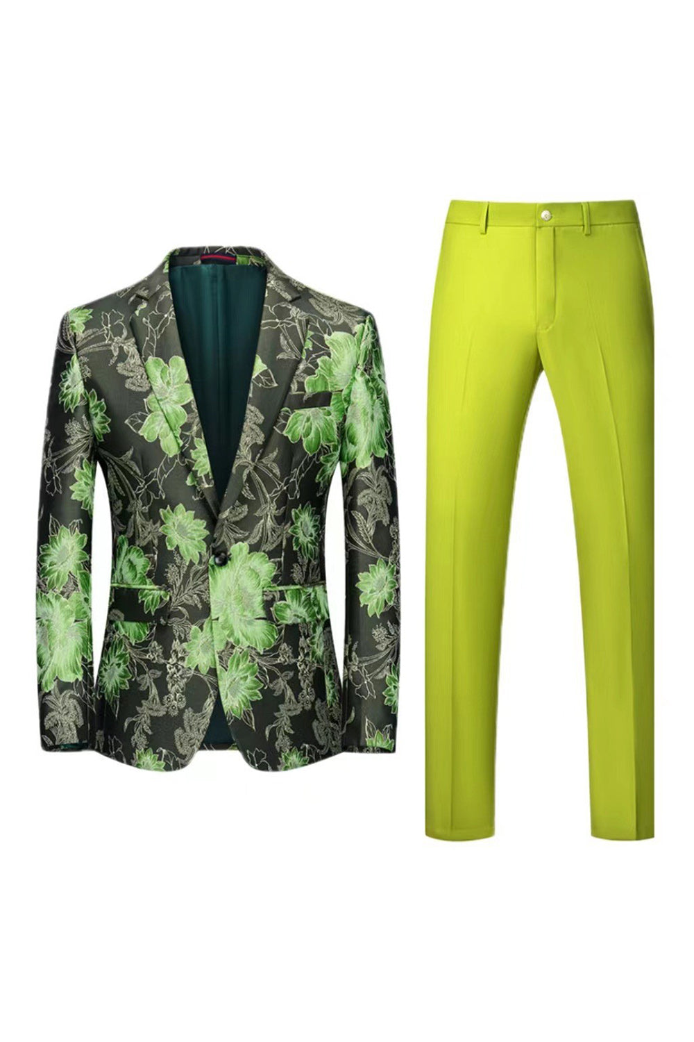 Costumes de bal de bal jaunes floraux 2 pièces à boutons à boutons et revers