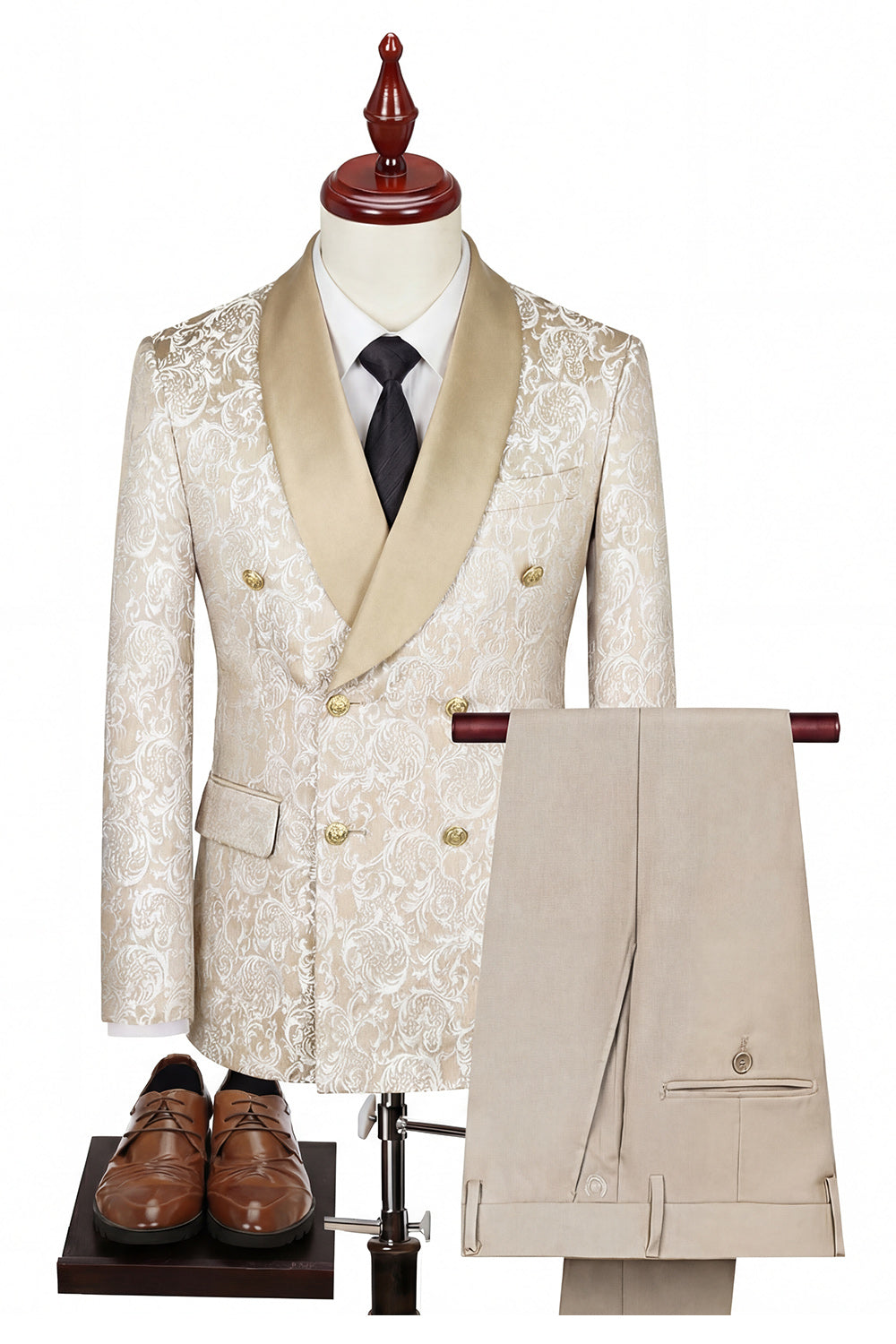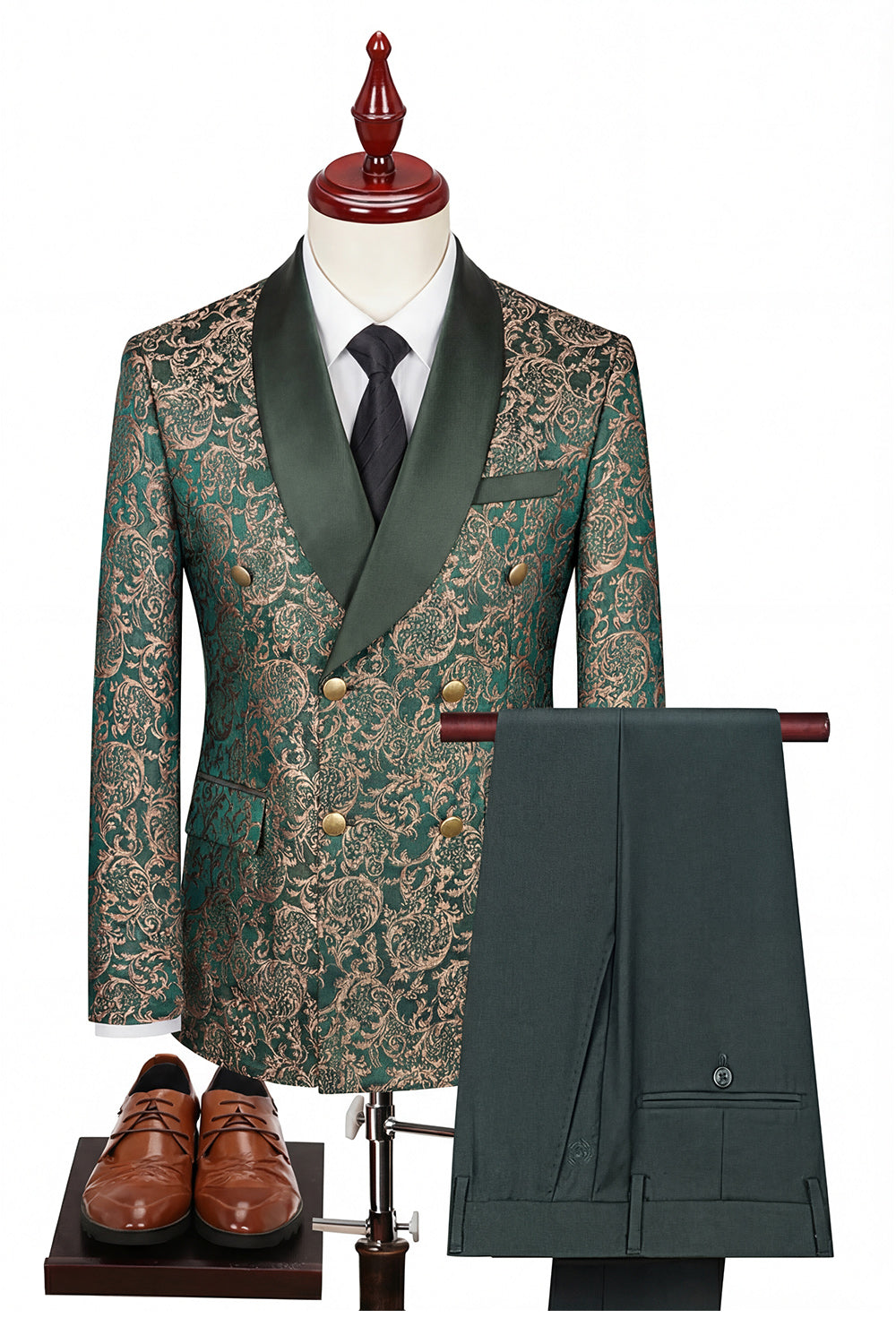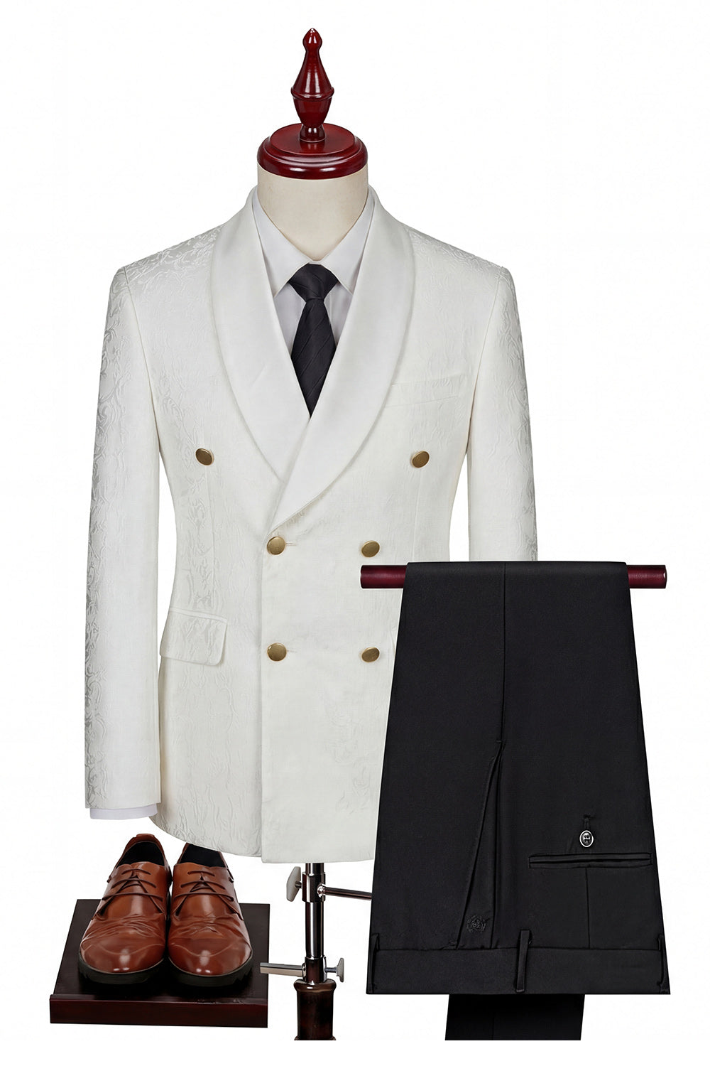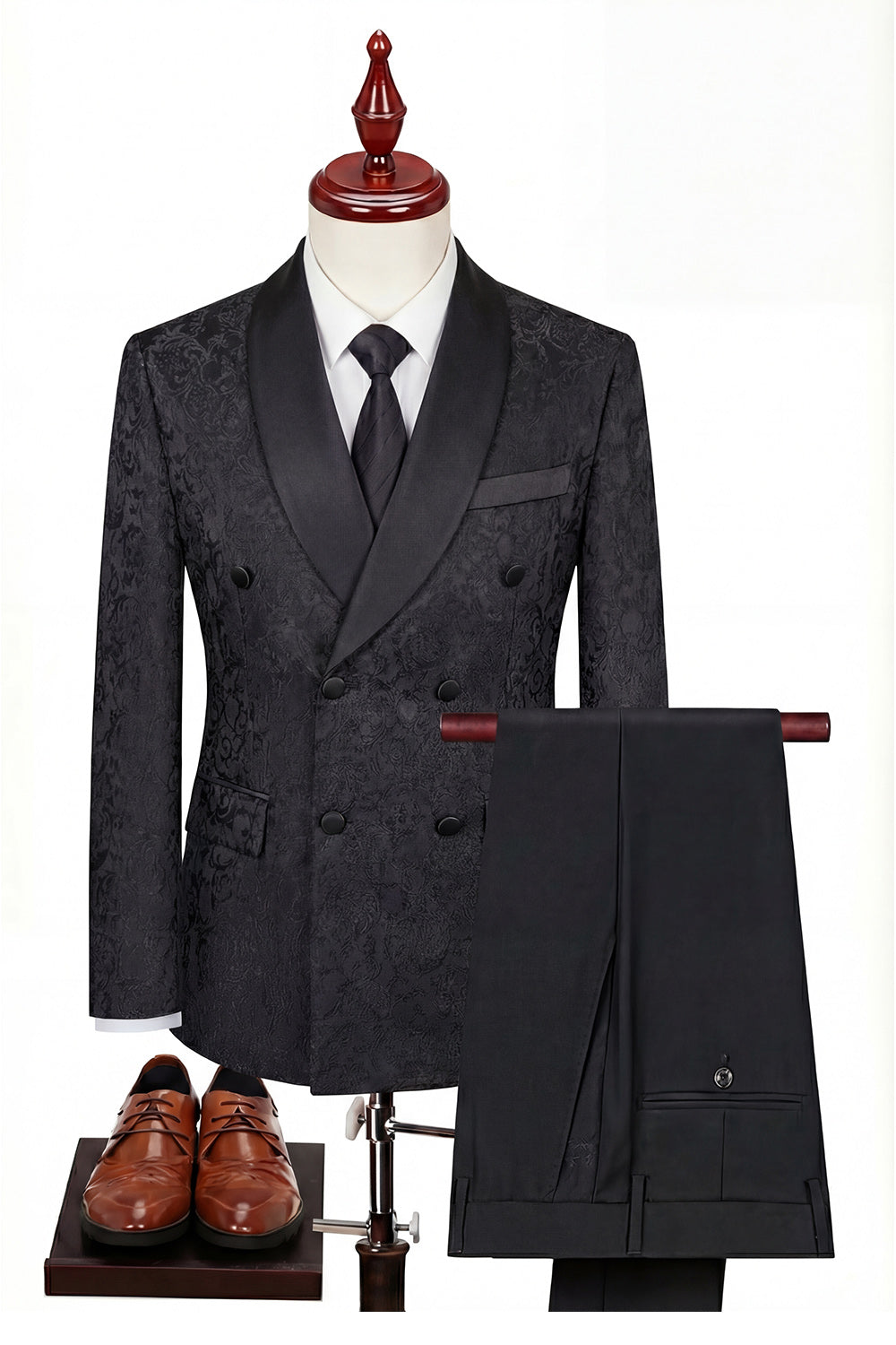 Costumes noirs en revers à châle croisé à boutonnage en trois pièces pour hommes