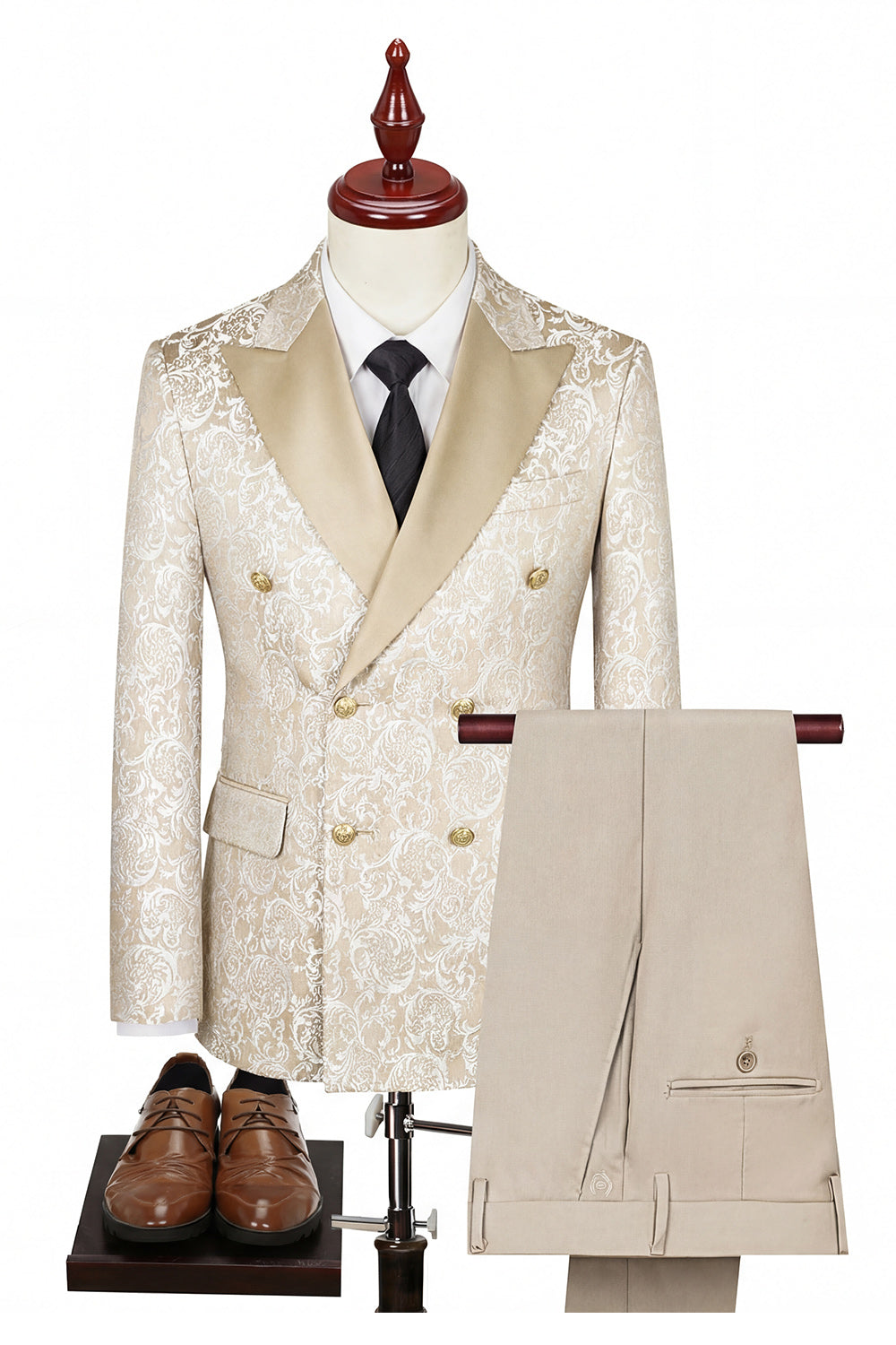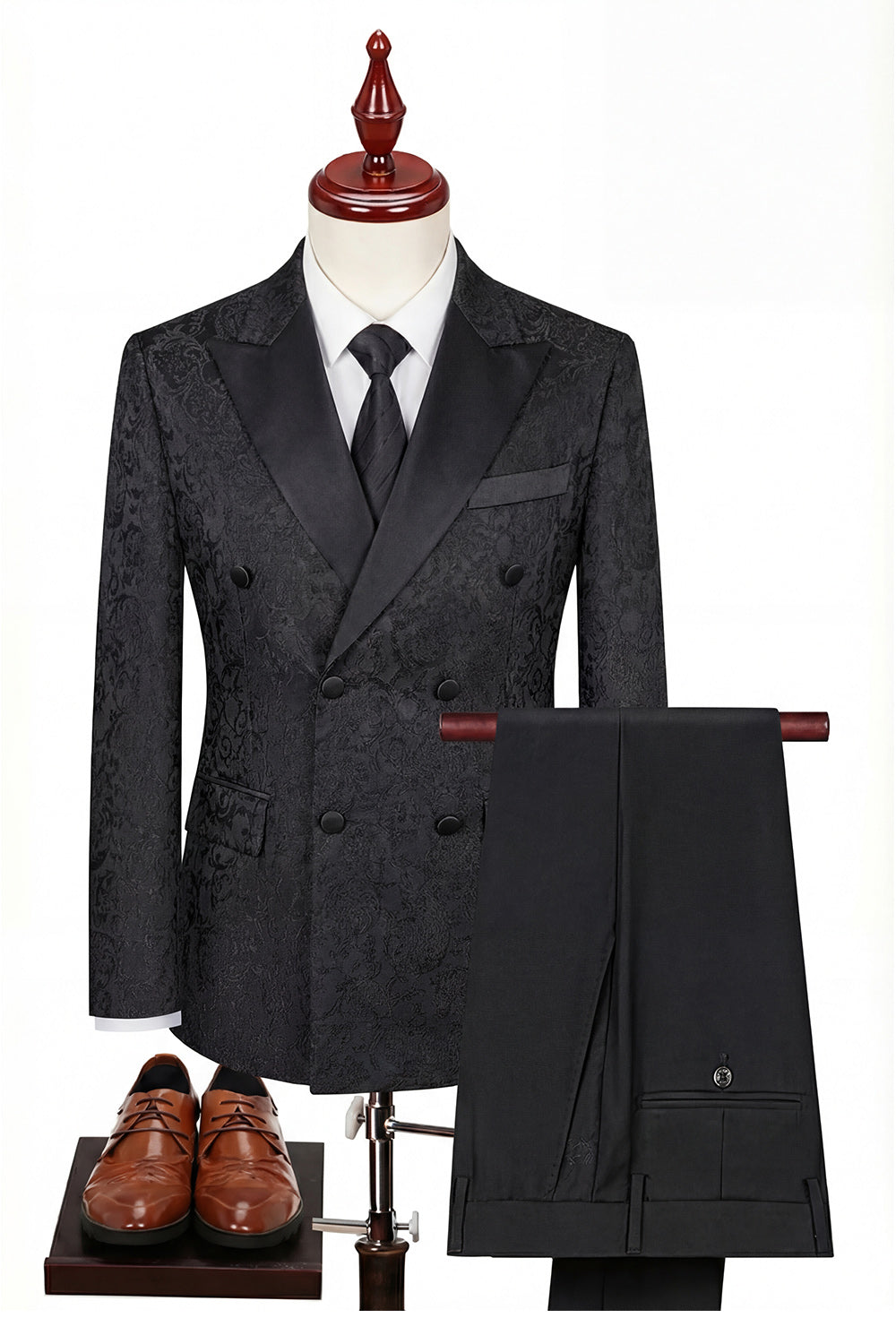 Costumes noirs trois pièces pour hommes à revers pointu à boutons doubles et pointés