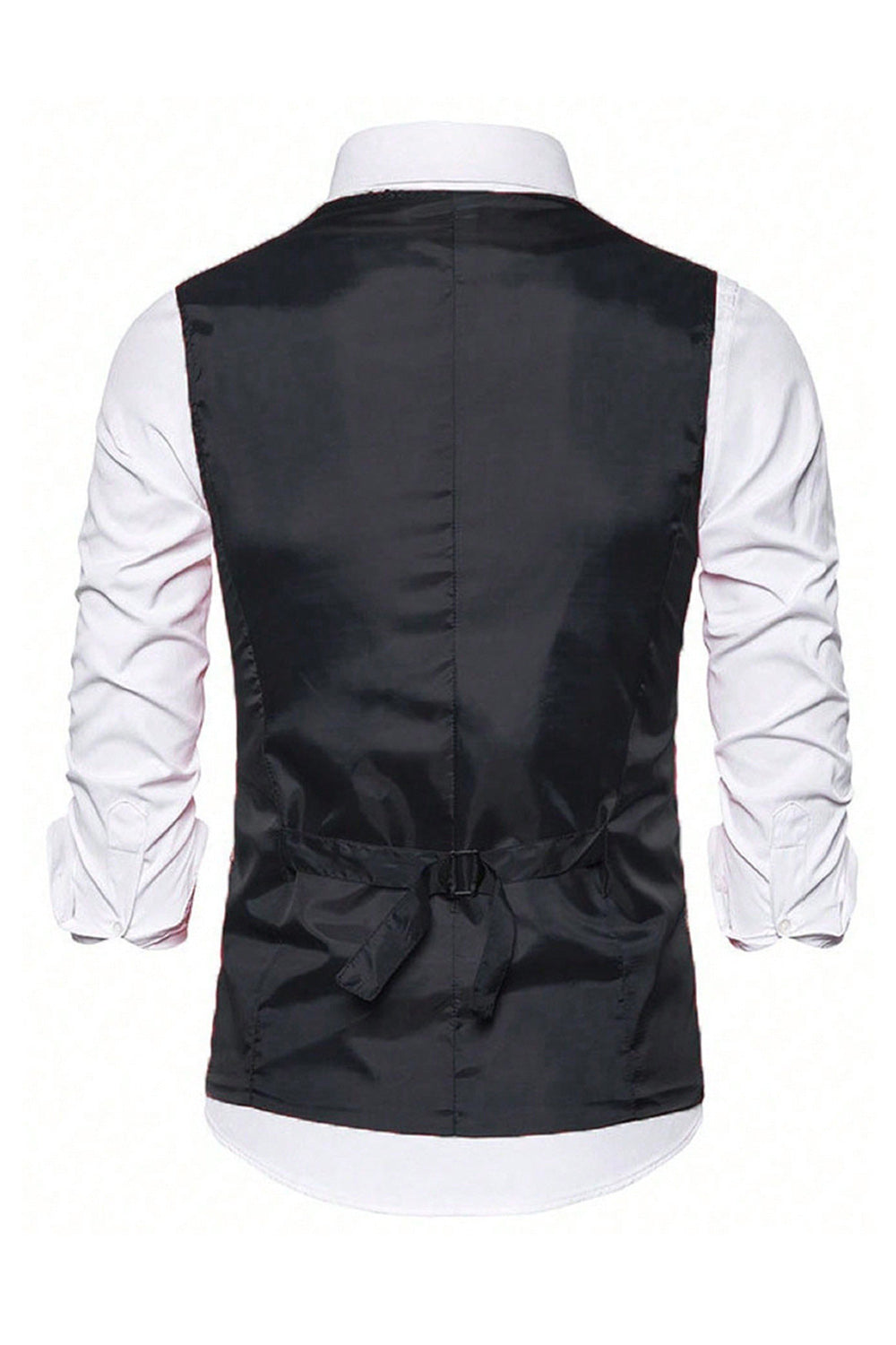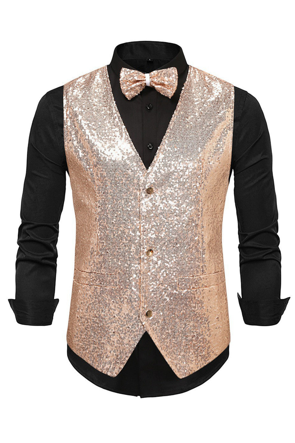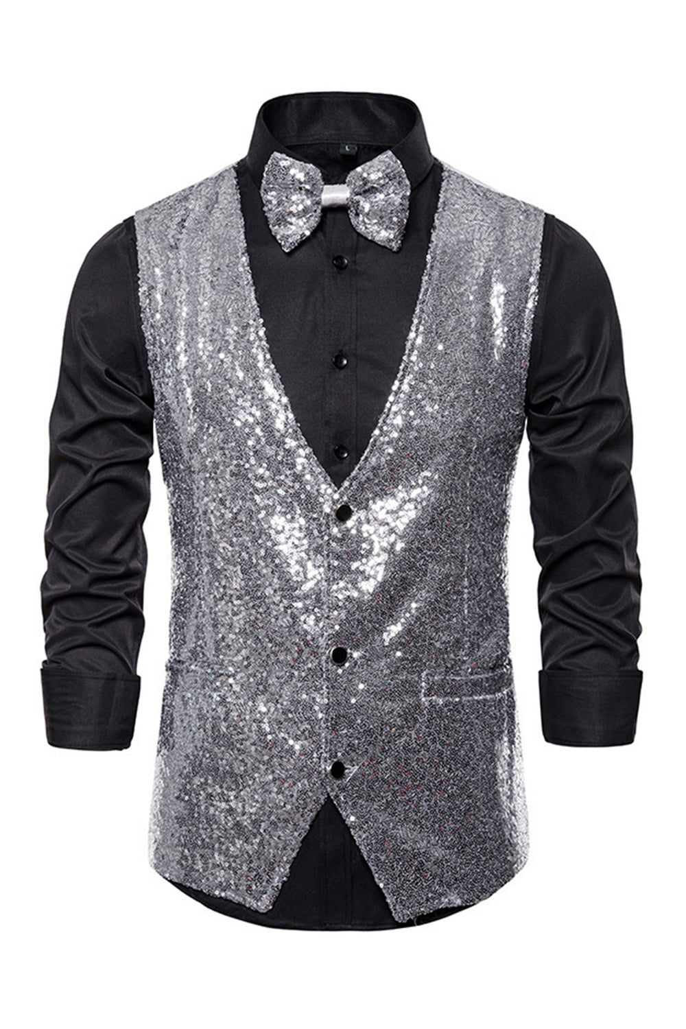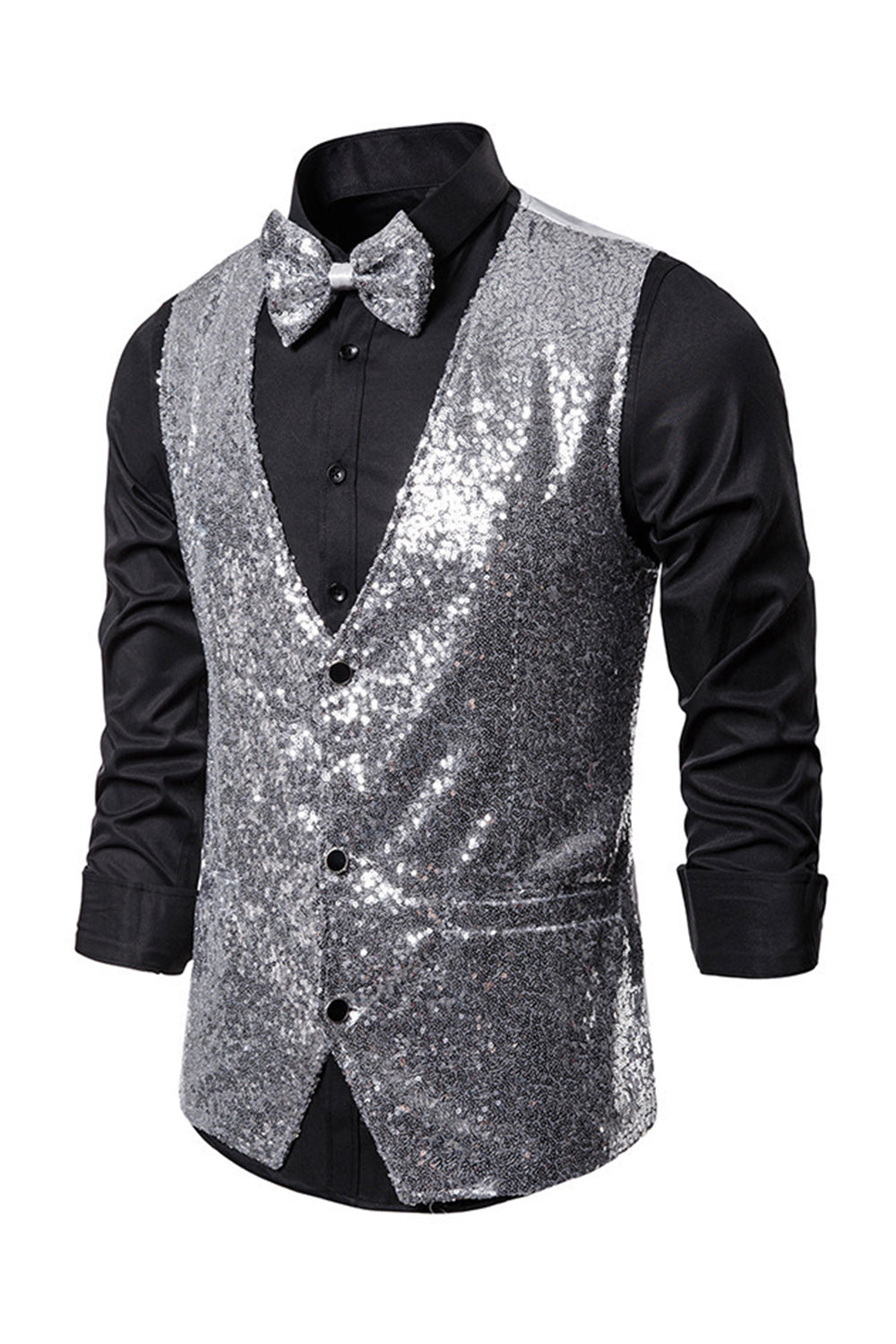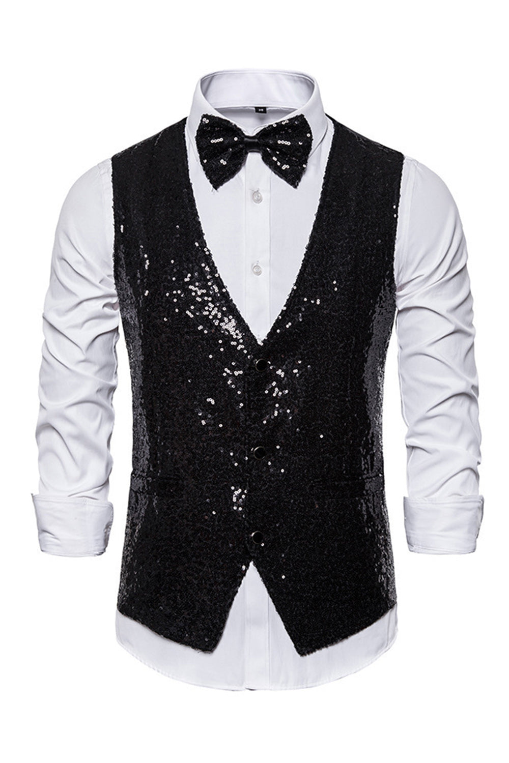 Gilet de costume homme noir à col en V et paillettes simple boutonne