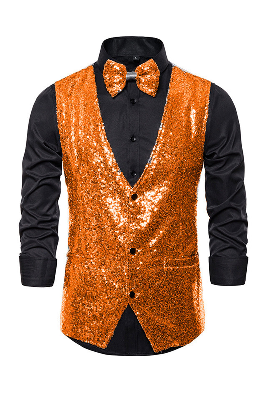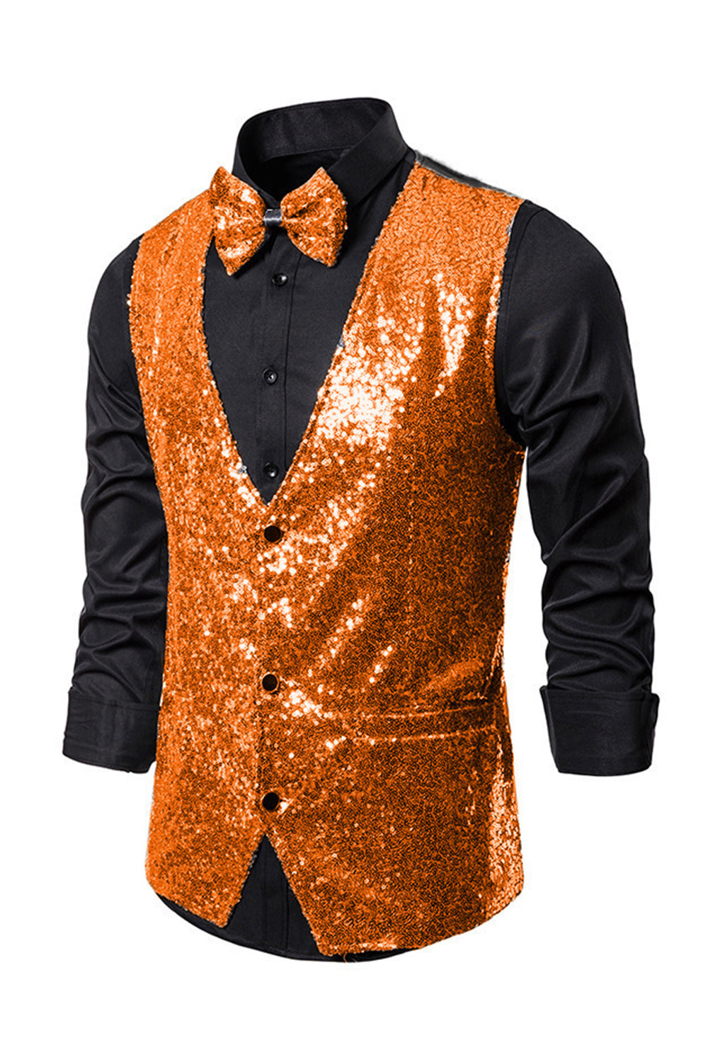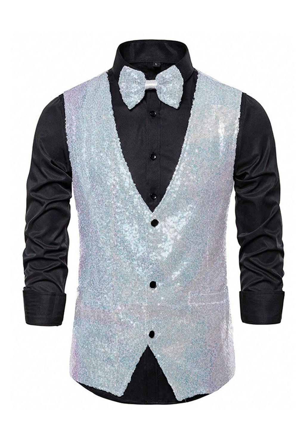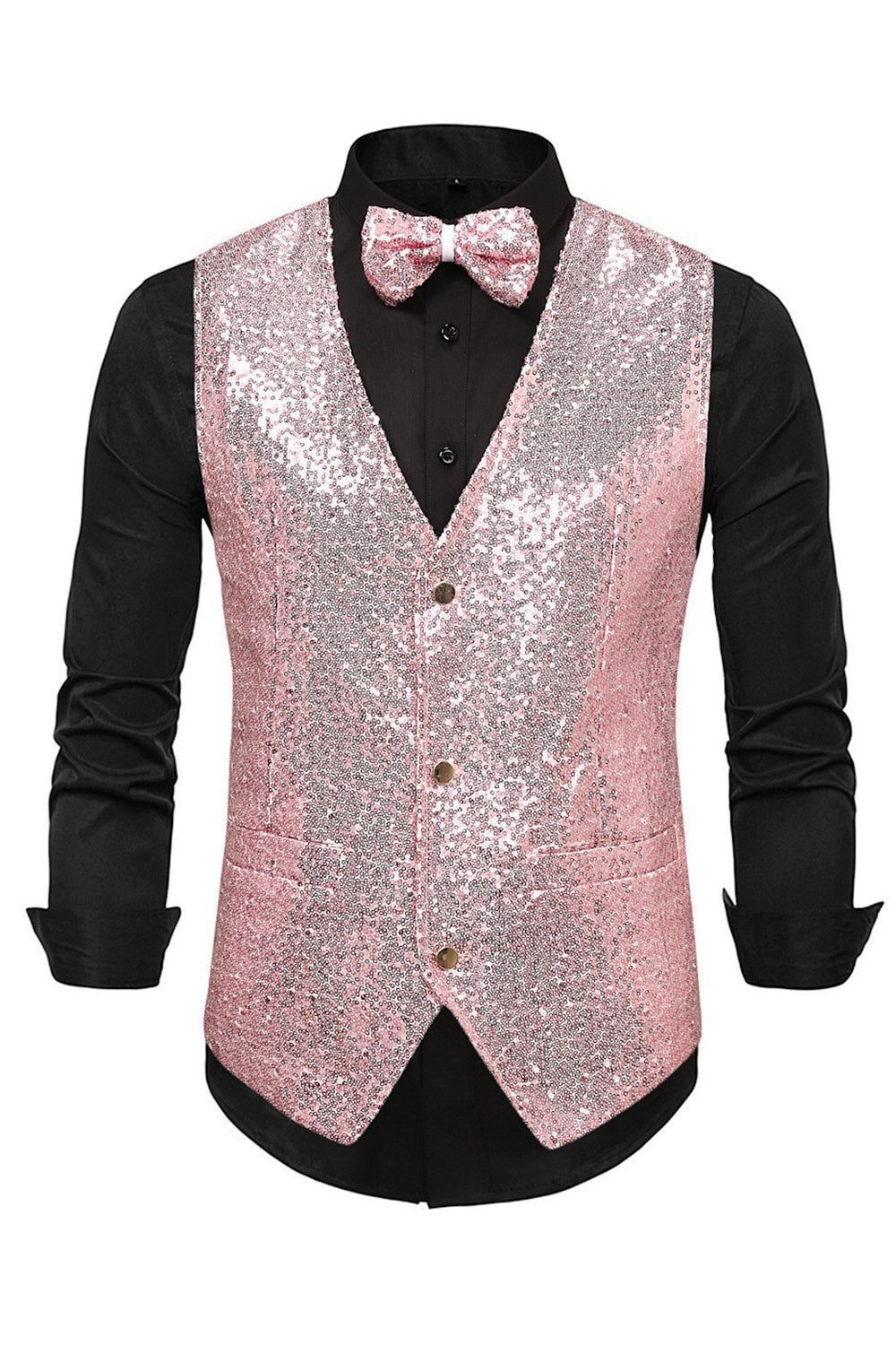 Gilet de costume homme noir à col en V et paillettes simple boutonne