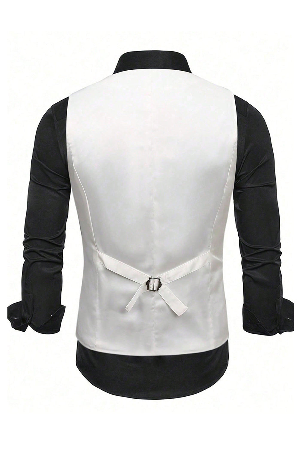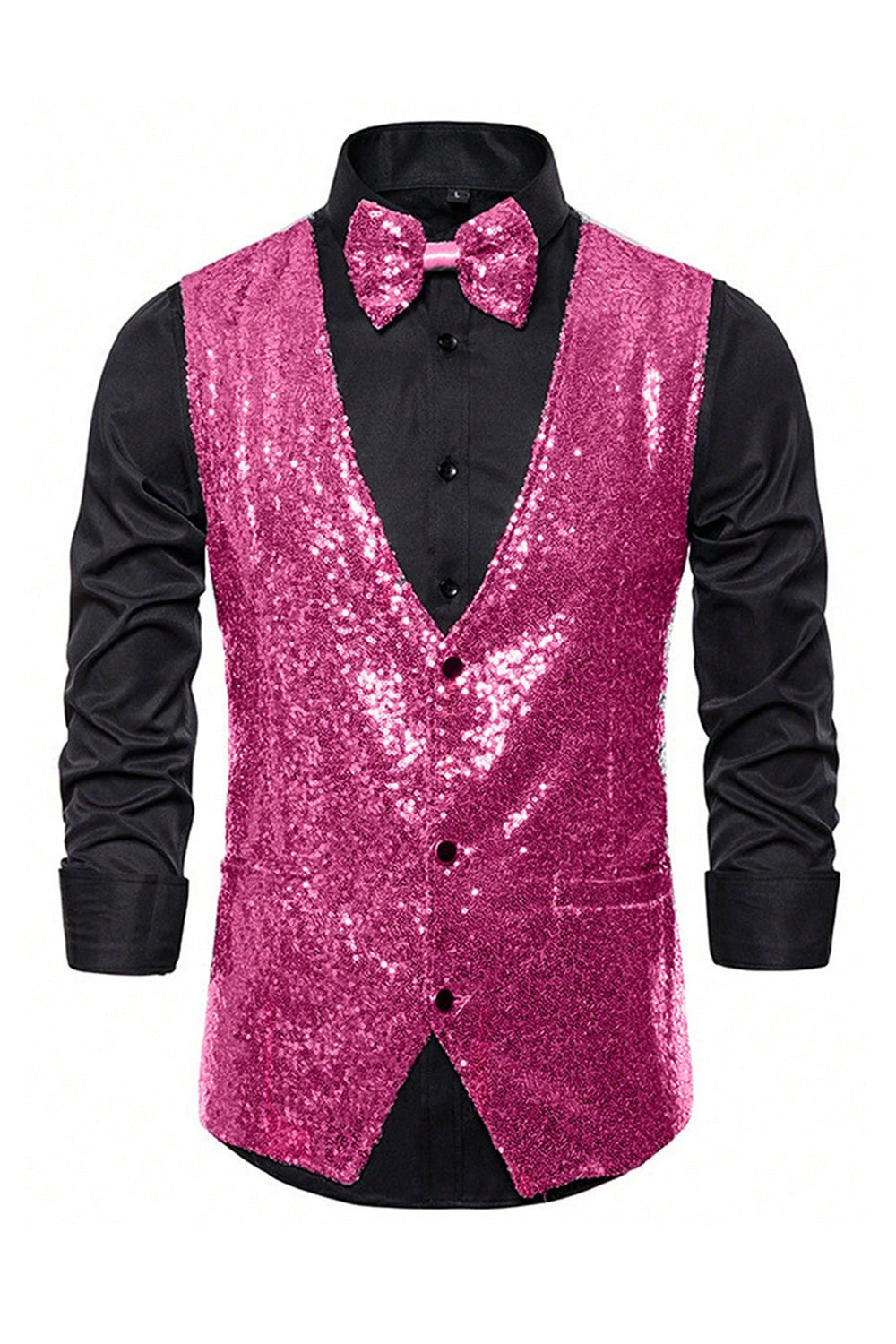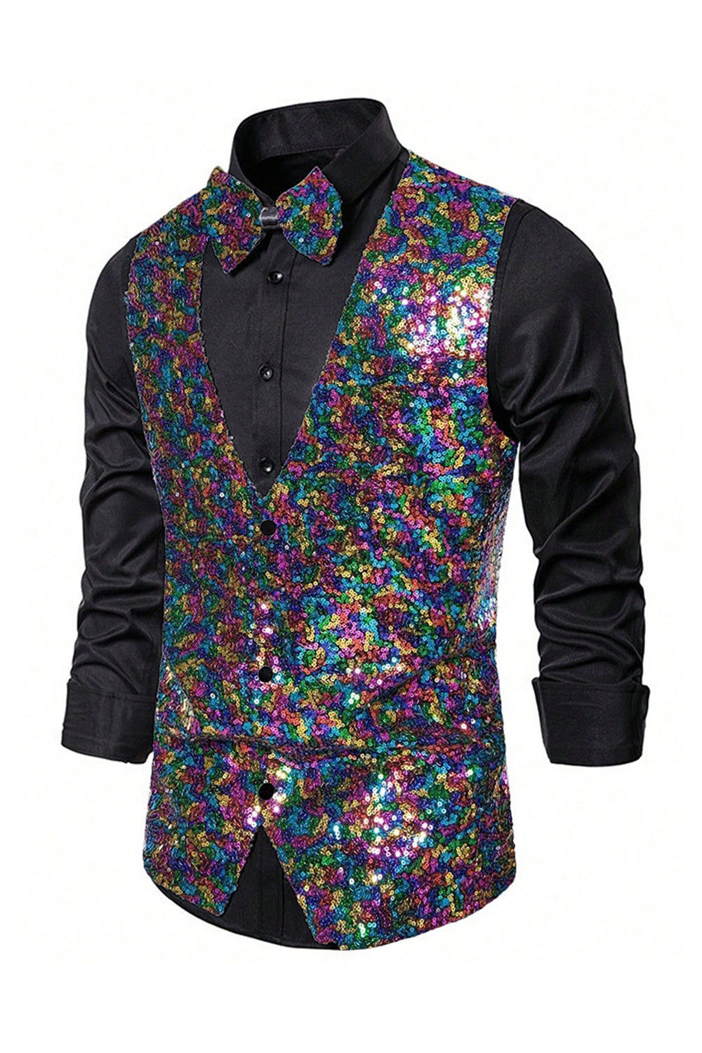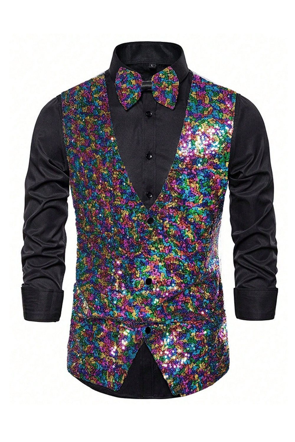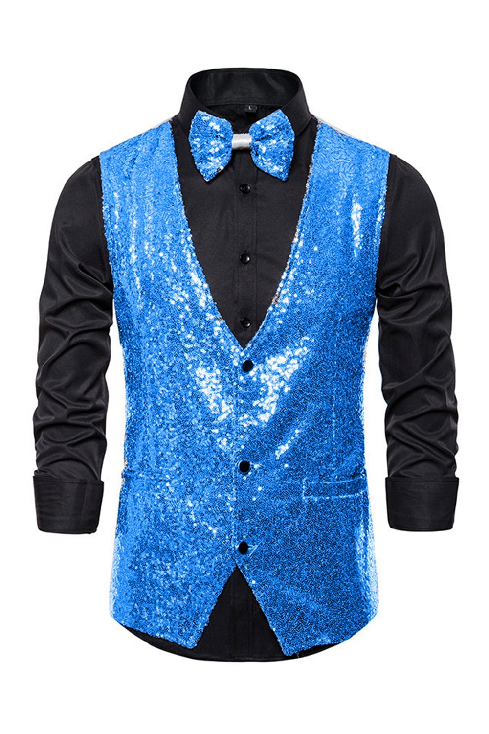 Gilet de costume homme noir à col en V et paillettes simple boutonne
