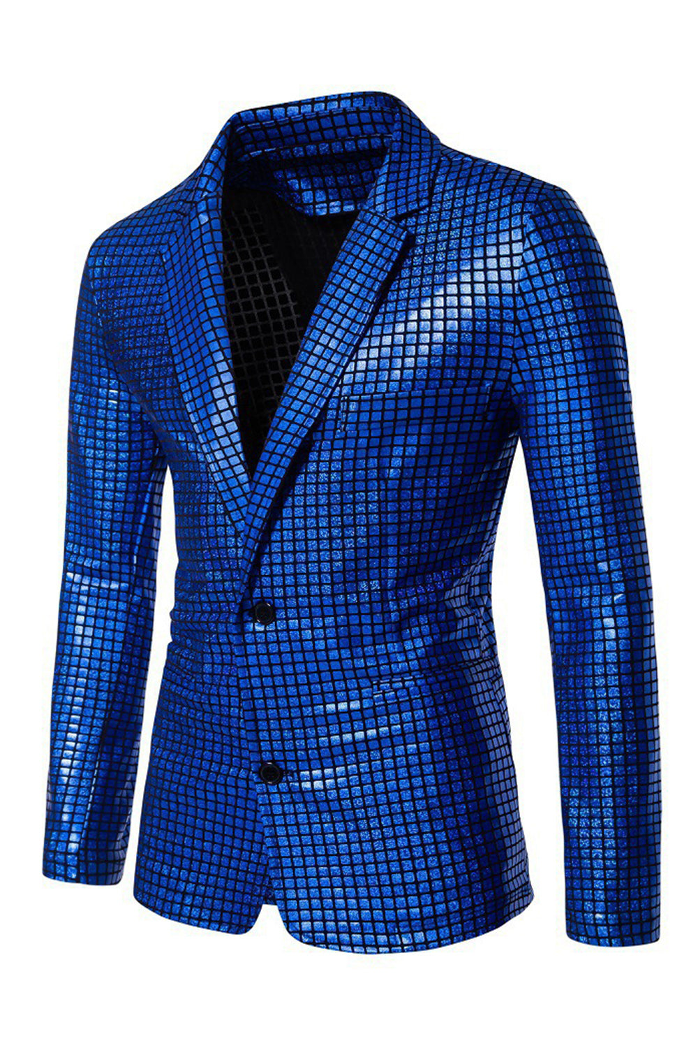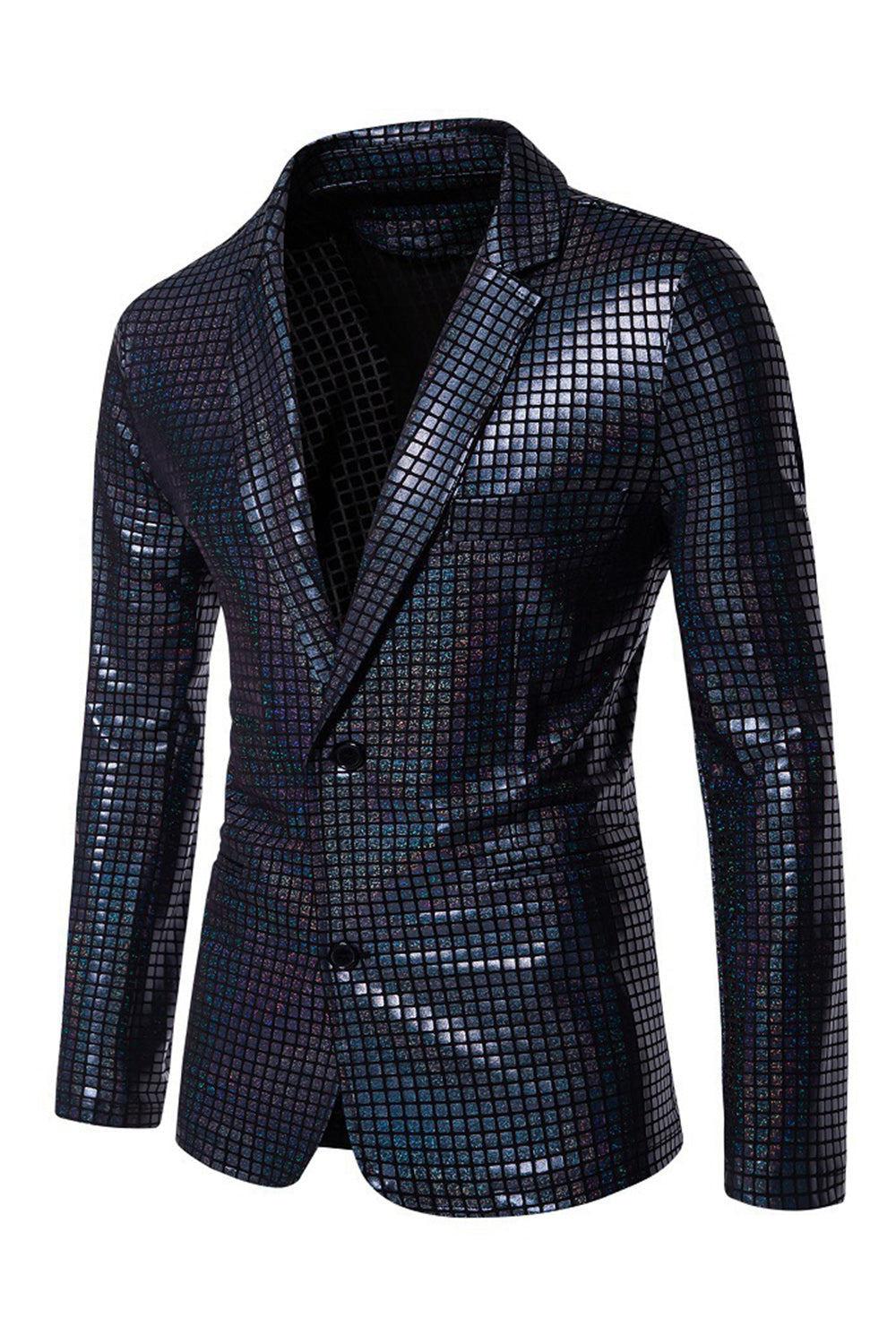 Maillots de bal noirs à grille métallique simple boutonne et boutonneur à revers cranté en 2 pièces pour hommes