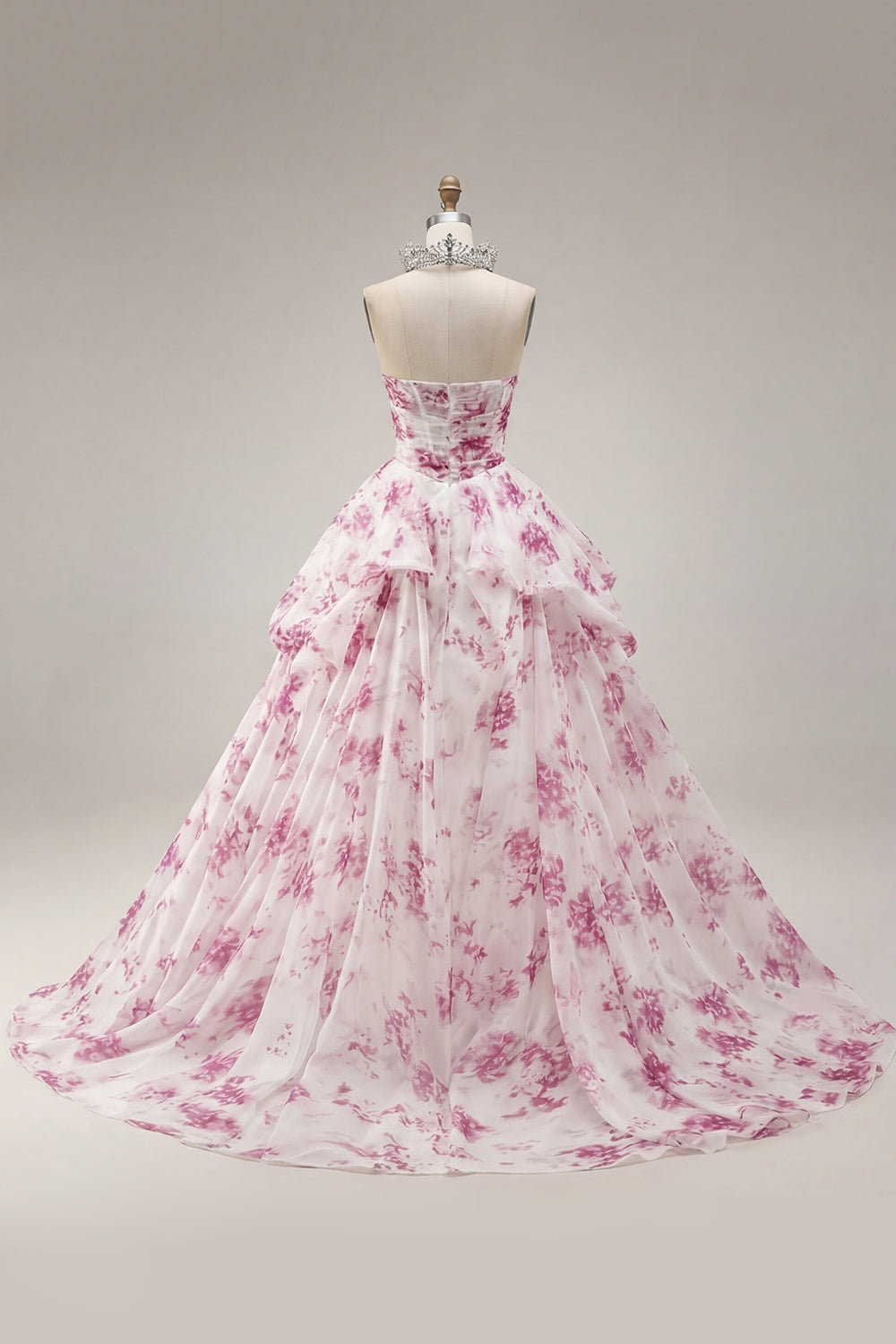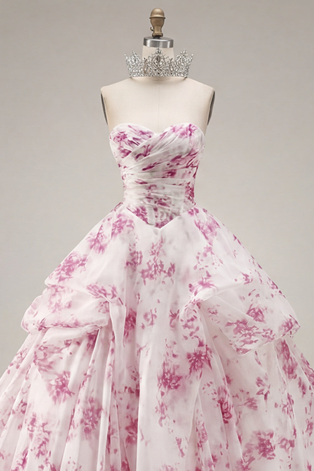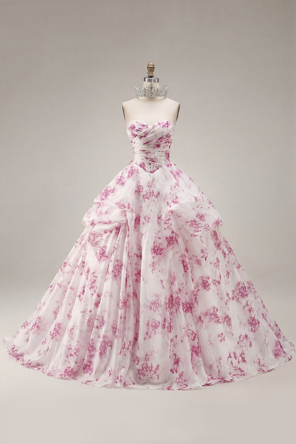 Robe de bal Anneau Blanche Fuchsia Florale Quinceañera