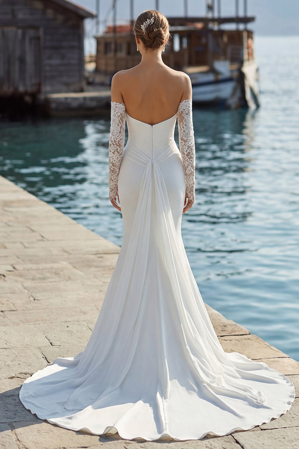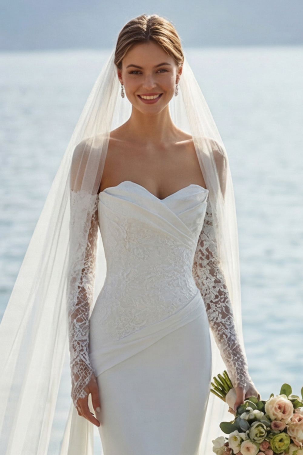 Robe de mariée en dentelle longue en sirène ivoire avec des appliques