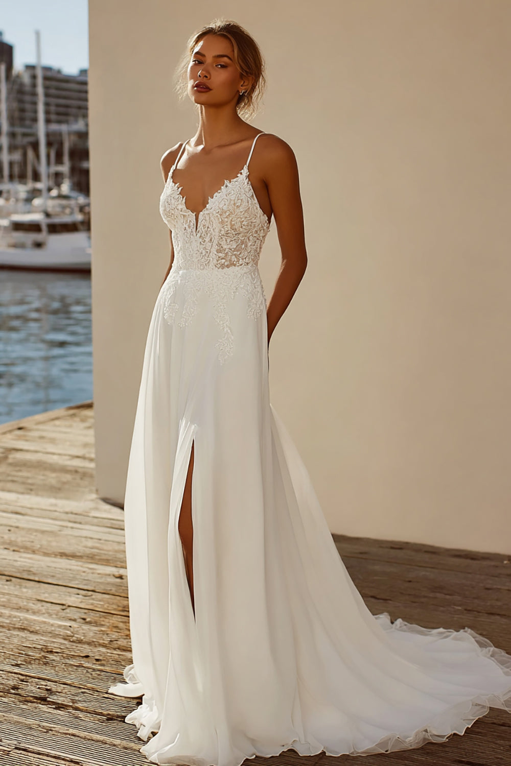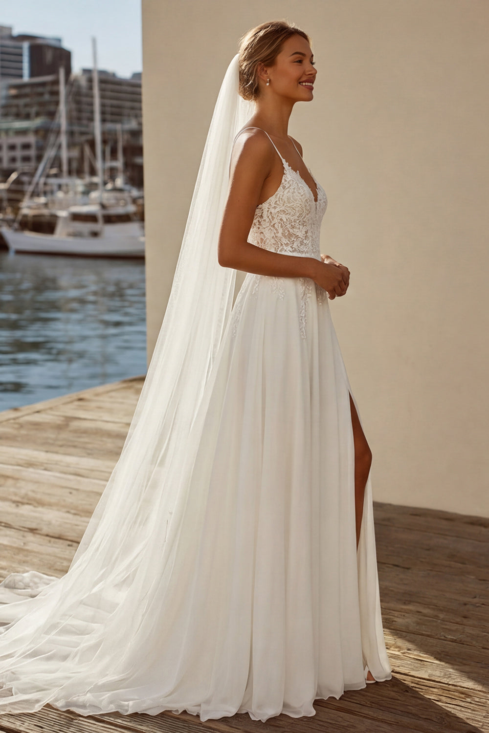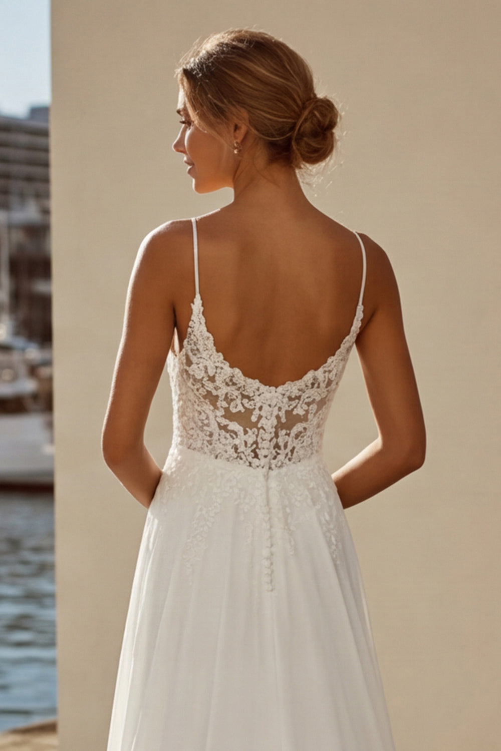 Robe de mariée en traîne en dinelle en mousseline Ivory A Line