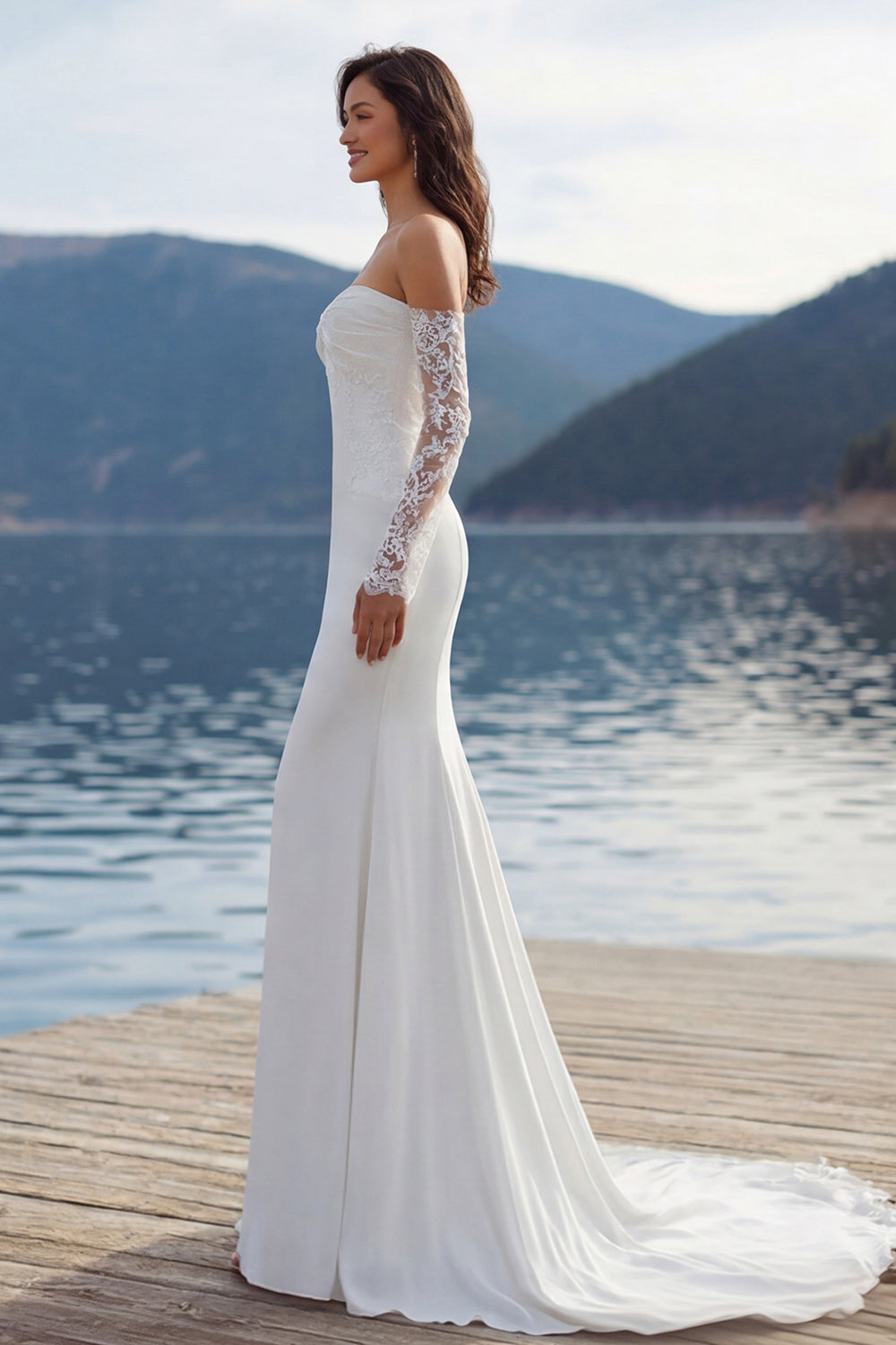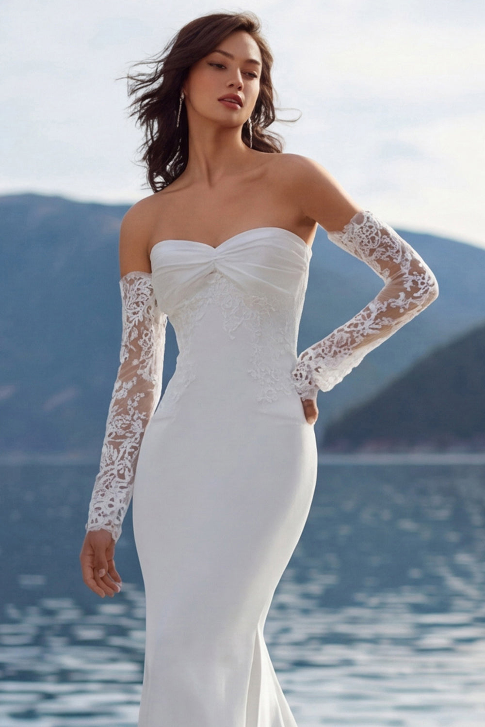 Robe de mariée Ivory Sweetheart Sweep Siren Sweep avec manches