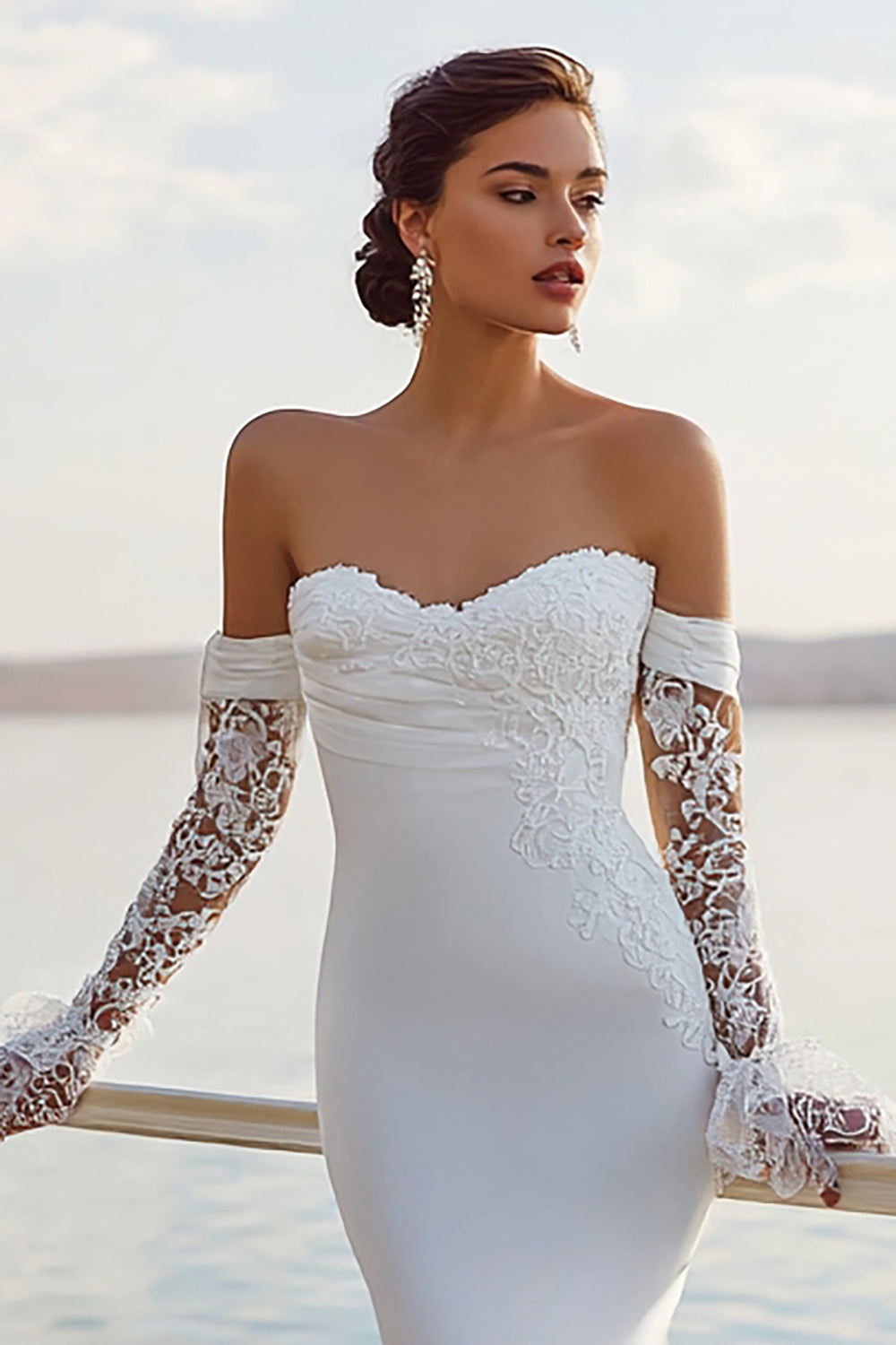 Robe de mariée longue en chiffon en chiffon en ivoire
