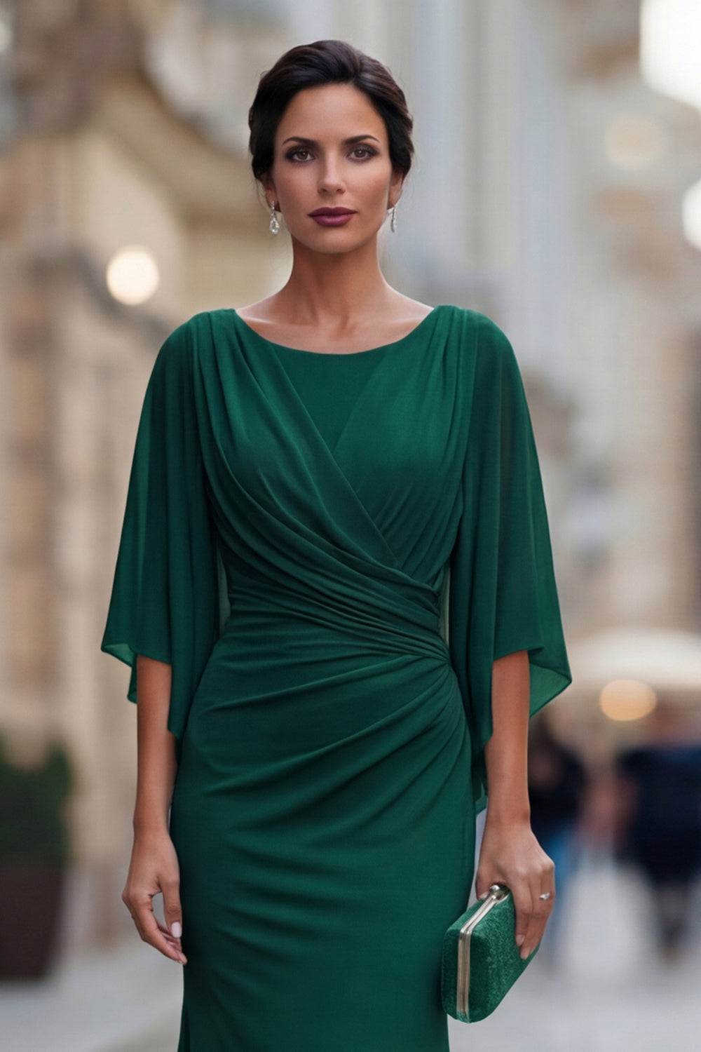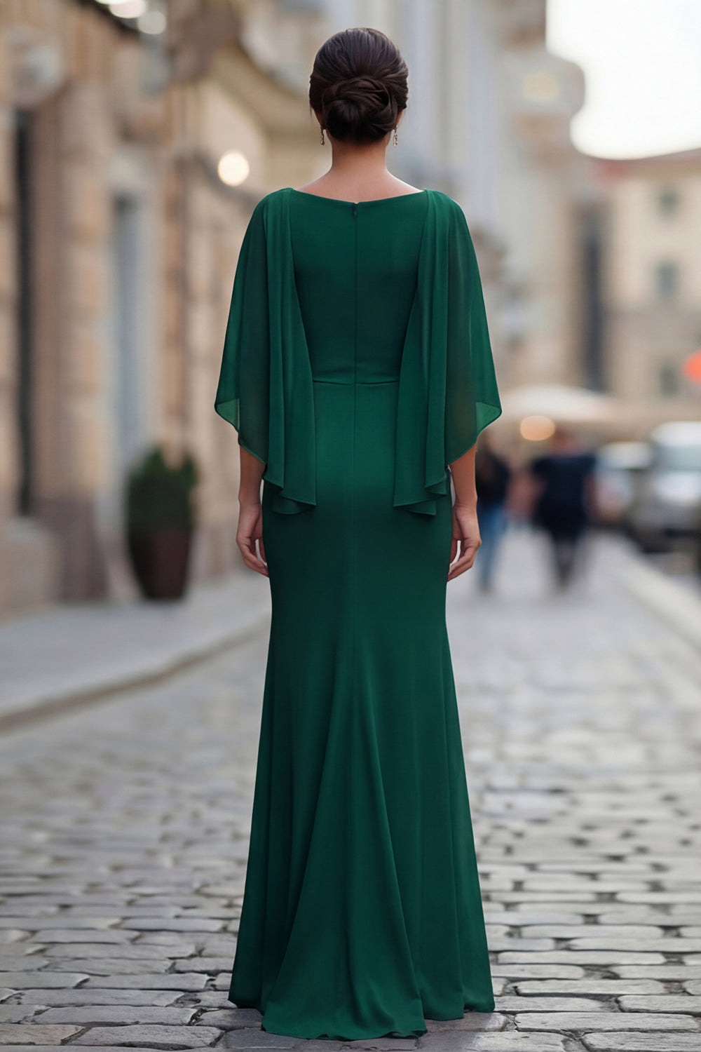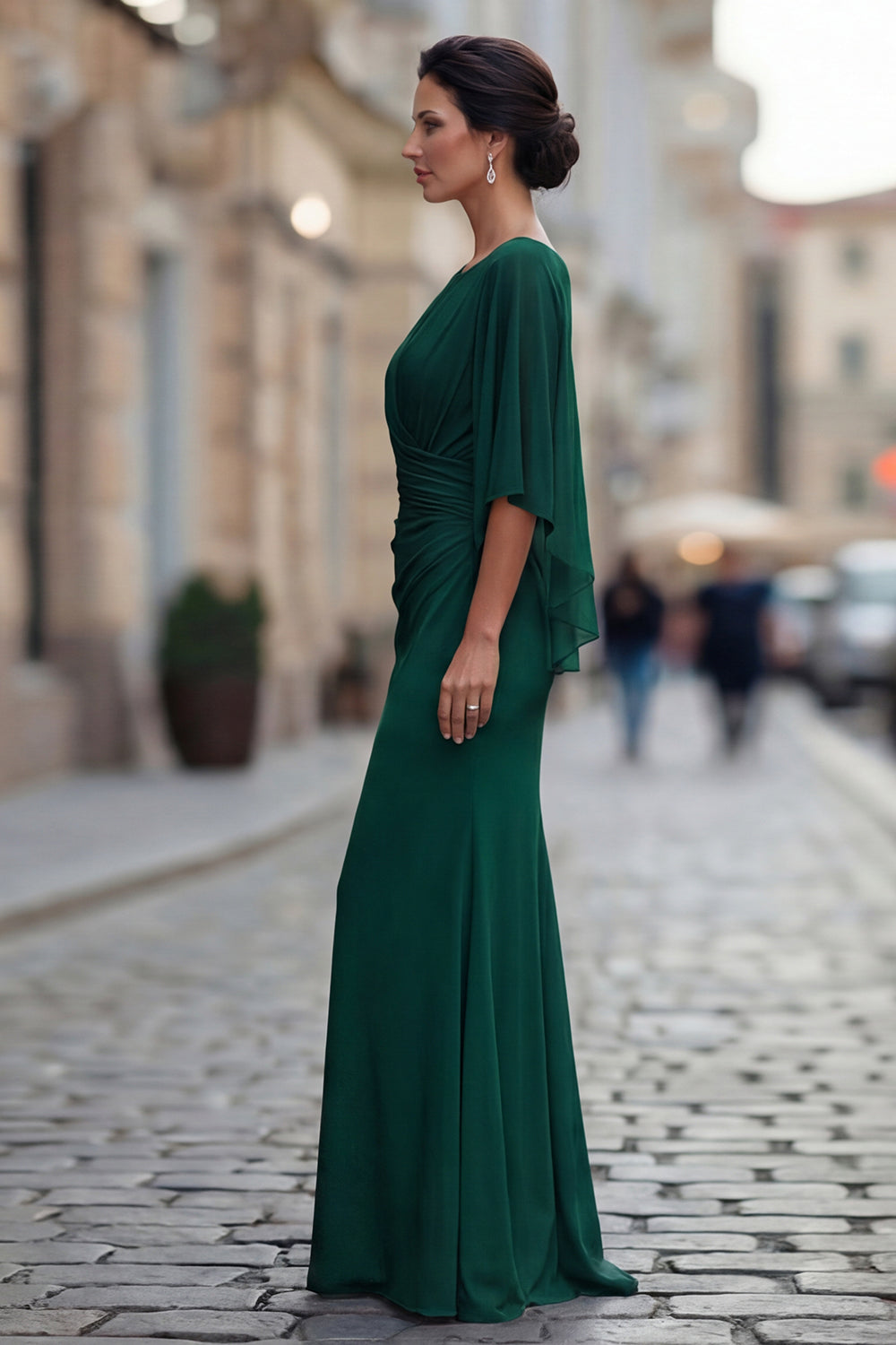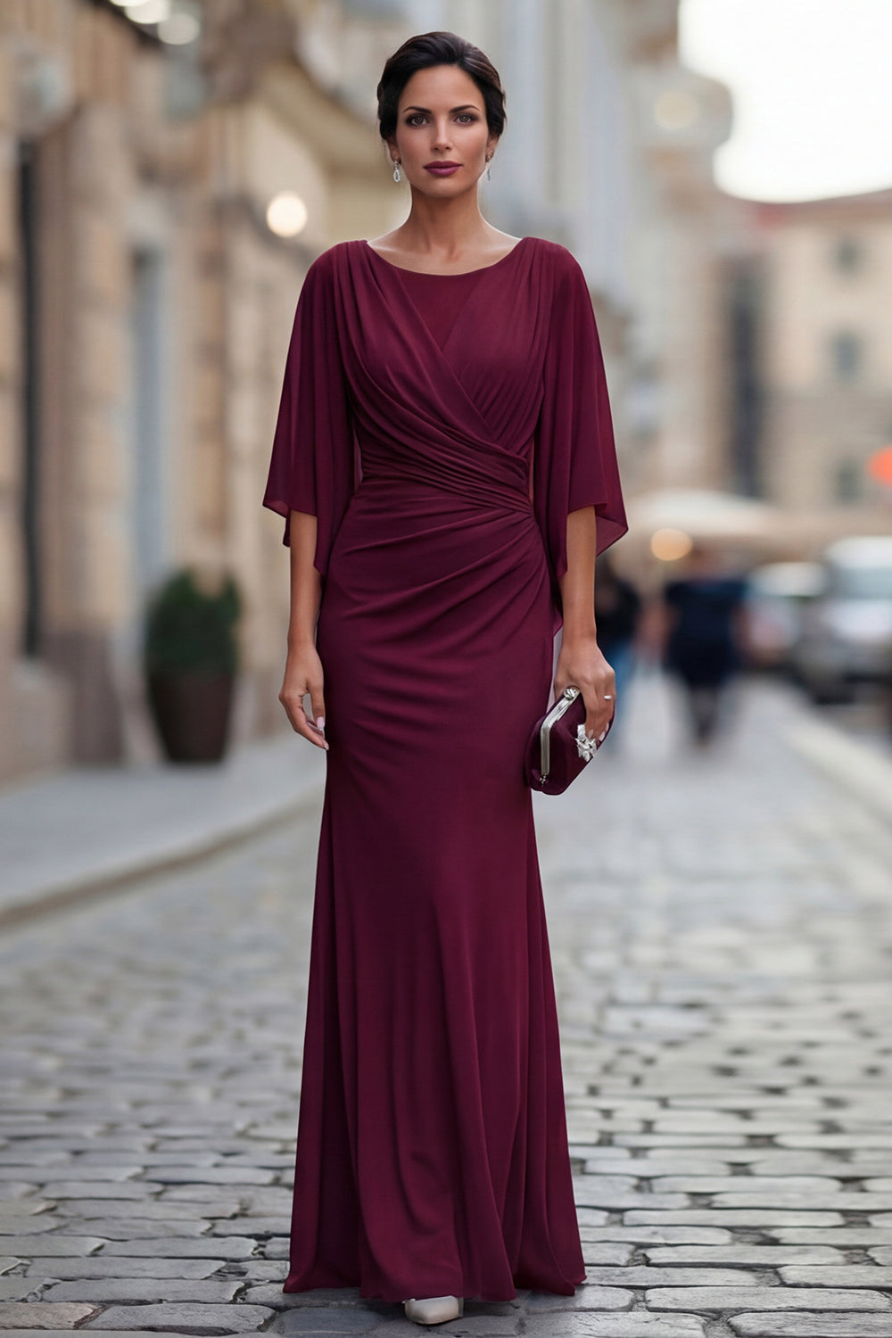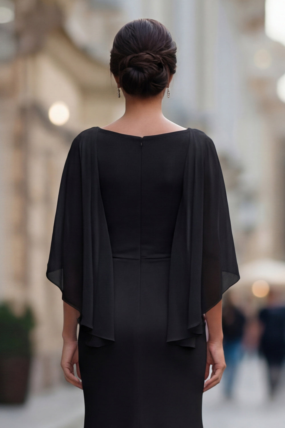 Robe de mère de la mariée à col rond sirène noire avec demi-manches