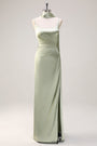 Sage Sirène Une Épaule Streamer Ruched Satin Longue Robe de demoiselle d’honneur avec Fente