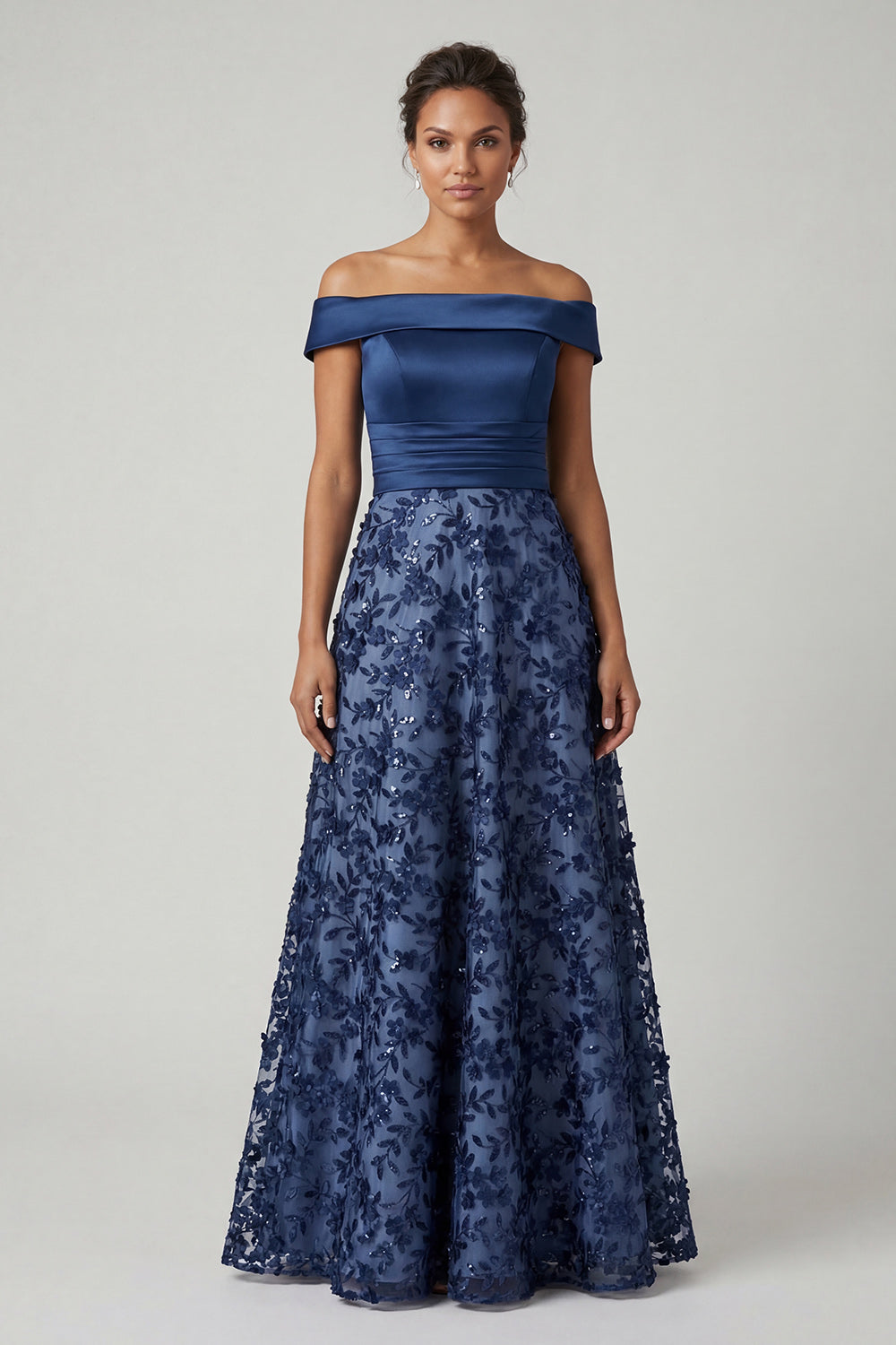Sequins bleu marine à épaules dénudées, une ligne longue robe mère de la mariée
