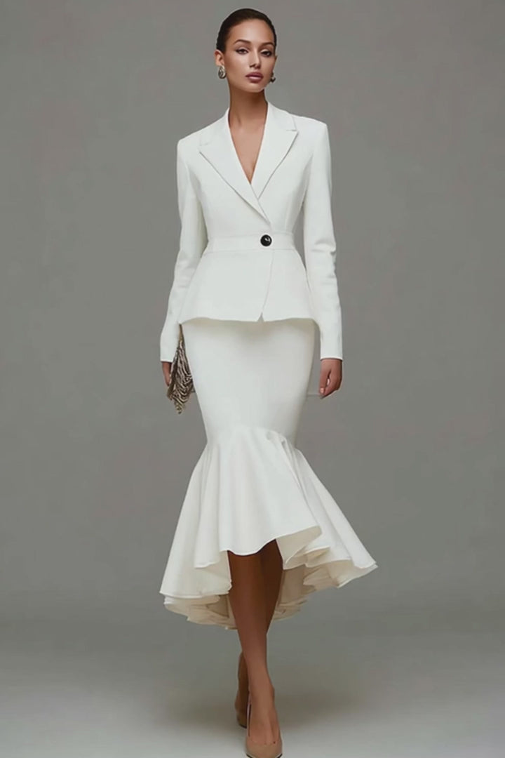 Sirène Robe de travail midi à revers en pointe ivoire