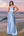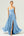 Bleu ciel A-ligne spaghetti bretelles froncé Robe de demoiselle d’honneur longue fendue avec lacets dans le dos