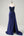 Bleu foncé moulante spaghetti bretelles robe longue de demoiselle d’honneur avec fente à volants
