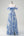 Robe de demoiselle d’honneur trapèze à fleurs blanches et bleues avec fente