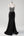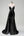Robe de demoiselle d’honneur longue noire à col en V avec appliques à sequins