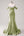 Sage Mermaid Spaghetti Bretelles Robe de demoiselle d’honneur en satin froncé avec fente
