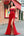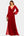 Robe mère de la mariée en mousseline de soie rouge à col en V à manches longues