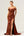 Rouille Sirène Épaule Froide Ruché Corset Longue Robe de Demoiselle D’honneur Avec Fente