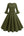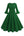 Robe vintage plissée à manches longues à col rond vert foncé des années 1950