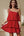 Robe de soirée courte rouge à une épaule plissée à plusieurs niveaux