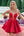 Robe de soirée Court rouge trapèze sans bretelles avec corset à volants courts et jolies perles