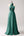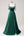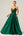Robe de soirée longue à bretelles spaghetti trapèze vert foncé scintillante avec poches