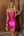 Robe de cocktail moulante fuchsia à paillettes col en V dos nu avec paillettes