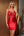 Élégant moulant spaghetti bretelles corset satin rouge robe de soirée court avec fente