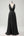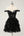 Robe de cocktail noire scintillante en forme de corset à épaules dénudées et en dentelle à plusieurs niveaux