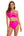 Maillot de bain deux pièces fuchsia taille haute à une épaule