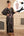 Caftan marocain ceinturé à manches longues et imprimé floral noir