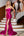 Fuchsia sirène bretelles spaghetti longue robe de Soirée avec fente
