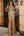 Superbe robe de soirée longue dorée à col en V avec fente sur le devant