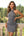Une ligne Deep V Neck Green Robe courte Cocktail avec volants