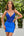 Robe de cocktail courte bleu royal moulante à bretelles spaghetti avec perles
