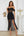 Robe de demoiselle d'honneur longue noire fourreau dos ouvert