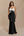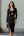 Robe de travail midi midi à épaules dénudées en satin noir avec manches