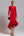 Robe de travail midi sirène à manches longues en satin rouge avec volants