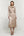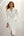 Robe de travail midi à manches longues en satin ivoire froncé à col en V