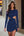 Robe de travail midi en satin froncé bleu poussiéreux avec manches