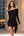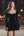 Robe de cocktail courte en tweed noir à boutons à col carré