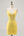 Robe courte A-ligne trapèze jaune sans bretelles et flare brocart