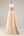 Robe de soirée longue champagne en tulle perlé et pailleté coupe A avec fente latérale