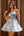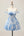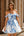 Robe de bal imprimée à paillettes a-ligne fleurs bleues blanches
