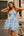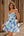 Robe de cocktail courte trapèze à fleurs blanches et bleues à plusieurs niveaux
